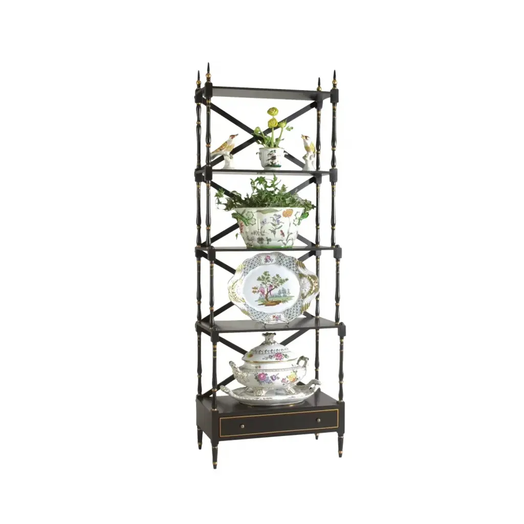 Metal Frame With Glass Shelves. Antique Gold Finish. Metal Frame With Glass Shelves Antique Gold Finish. 24W X 8D X 37H
