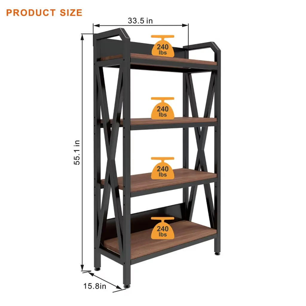 Brown Freestanding 4-tier Kitchen Baker's Rack With Adjustable Shelves, Heavy Duty Storage Shelf With Open Back For Pantry Or Garage-3irtyhousy