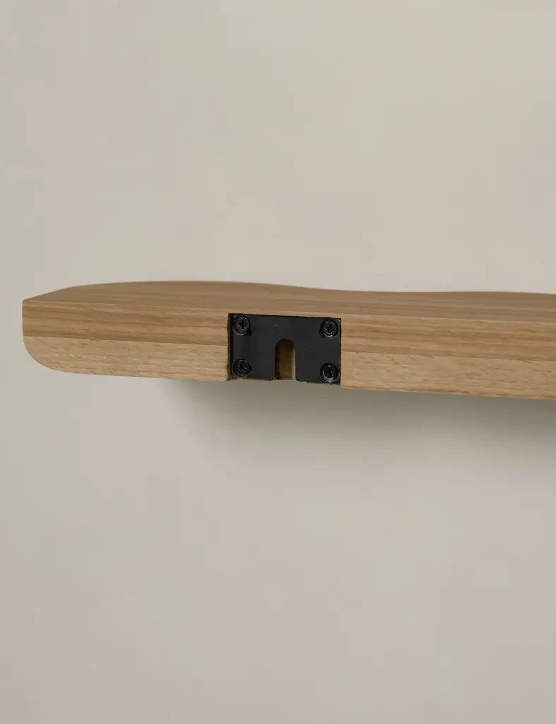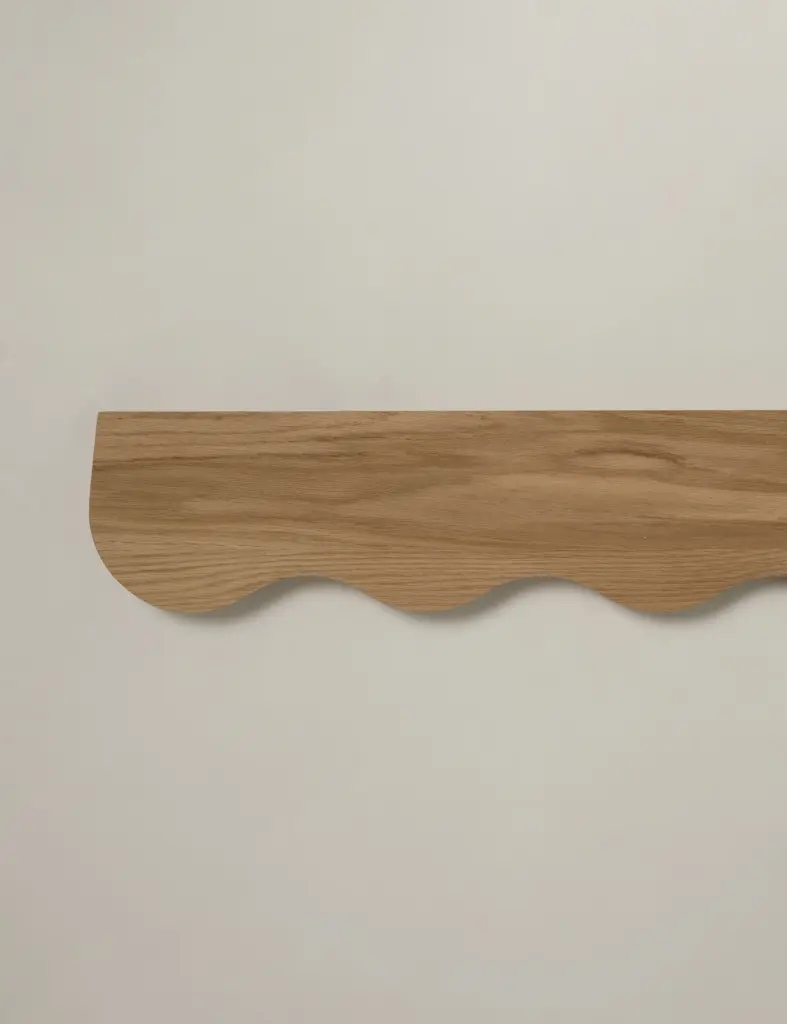 Add an artful touch of storage to your walls with the Cario shelf. The wavy shape and rounded edges bring a sculptural quality to the solid oak, styling a chic and versatile touch for everything from corralling accessories to staging a modern vignette. We love this piece in a home office or powder room for that extra bit of surface space with a stylish edge.