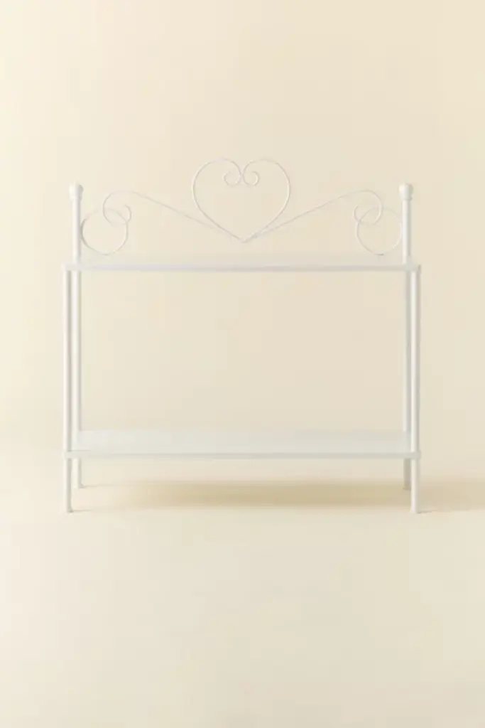 Bring a coquette feel to your living space and office with this iron bookshelf featuring two spacious shelves that are perfect for displaying your novels, plants & tchotchkes. Complete with swirling motifs accenting the top shelf that adds a whimsical finishing touch to your storage shelf. Available exclusively at Urban Outfitters. **Features** \- Celeste Small Iron Storage Shelf from UO Home’s Celeste furniture collection \- Two fixed shelves to hold your books, candles & trinkets \- Removable legs to easily move your shelf around your space \- Made to order just for you \- Assembly required \- UO exclusive **Content + Care** \- Assembly required - assembly instructions and hardware are included \- Iron \- Wipe clean \- Imported **Size** \- Dimensions: 32"l x 13"w x 31"h \- Leg height: 4.5", removable \- Space between shelves: 16" \- Weight limit: 26 lbs \- Weight: 15.7 lbs \- Shipping package dimensions: 37"l x 20.1"w x 15"h \- Shipping package weight: 30.9 lbs
