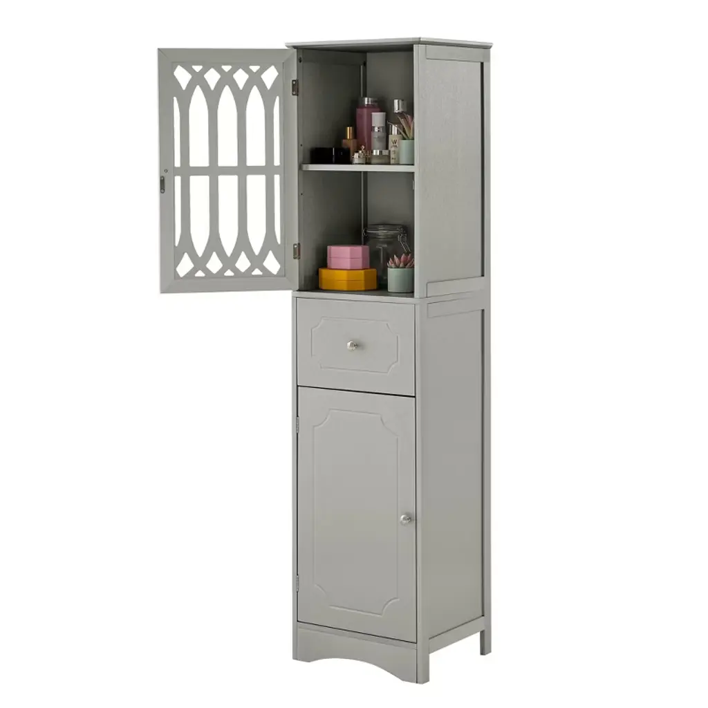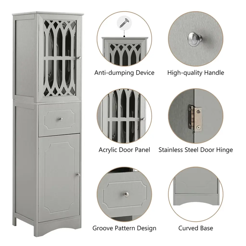 Chery Life Tall Bathroom Cabinet, Freestanding Storage Cabinet With Drawer And Doors, Acrylic Door, Adjustable Shelf, Gray