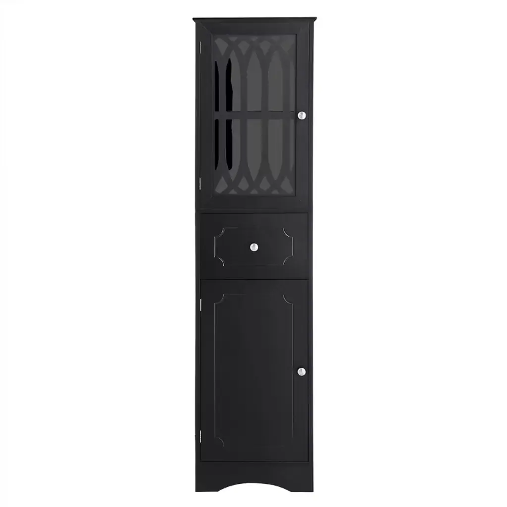 Elevate your bathroom storage with this sleek, modern cabinet featuring a light-colored, curved design and elegant groove patterns. Crafted from premium P2 MDF boards, it offers ample storage with an enclosed upper cabinet (acrylic door), a drawer, and a lower cabinet—perfect for towels, toiletries, and essentials. The compact, space-saving design includes an anti-tip kit for safety, while waterproof surfaces ensure easy cleaning. Includes all hardware and instructions for hassle-free assembly.