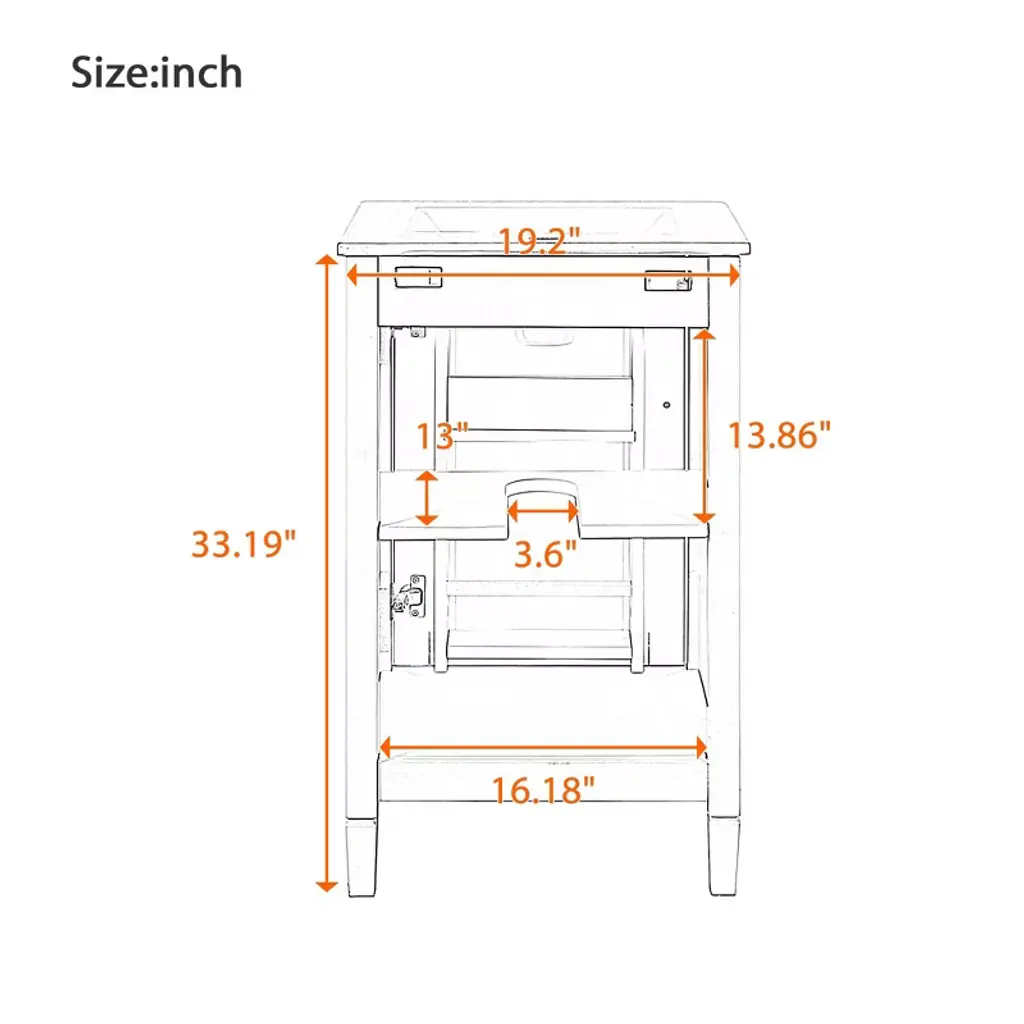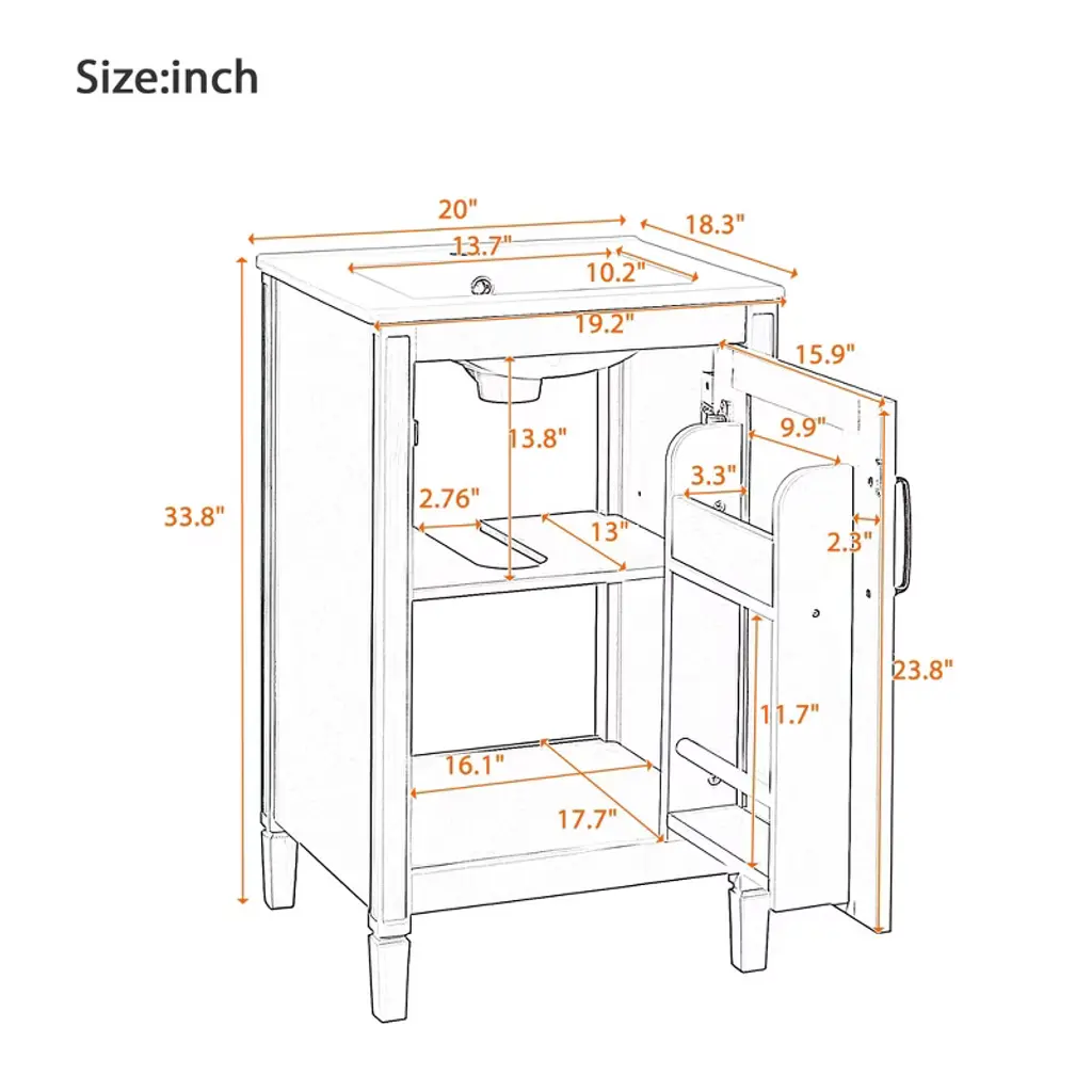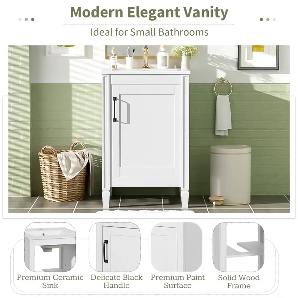 Chicfurnit 20 Inch Bathroom Vanity With Sink Freestanding Storage Cabinet With Soft Close Door Adjustable Shelf For Bathroom, White, 19.25"*18"*33.8"