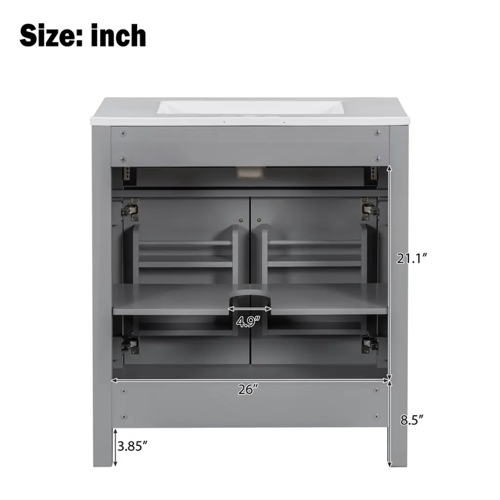 Chicfurnit 30 Inch Bathroom Vanity With Sink Freestanding Storage Cabinet With 2 Doors And U Shaped Shelf For Bathroom, Gray, 18.3"*30"*33.59"