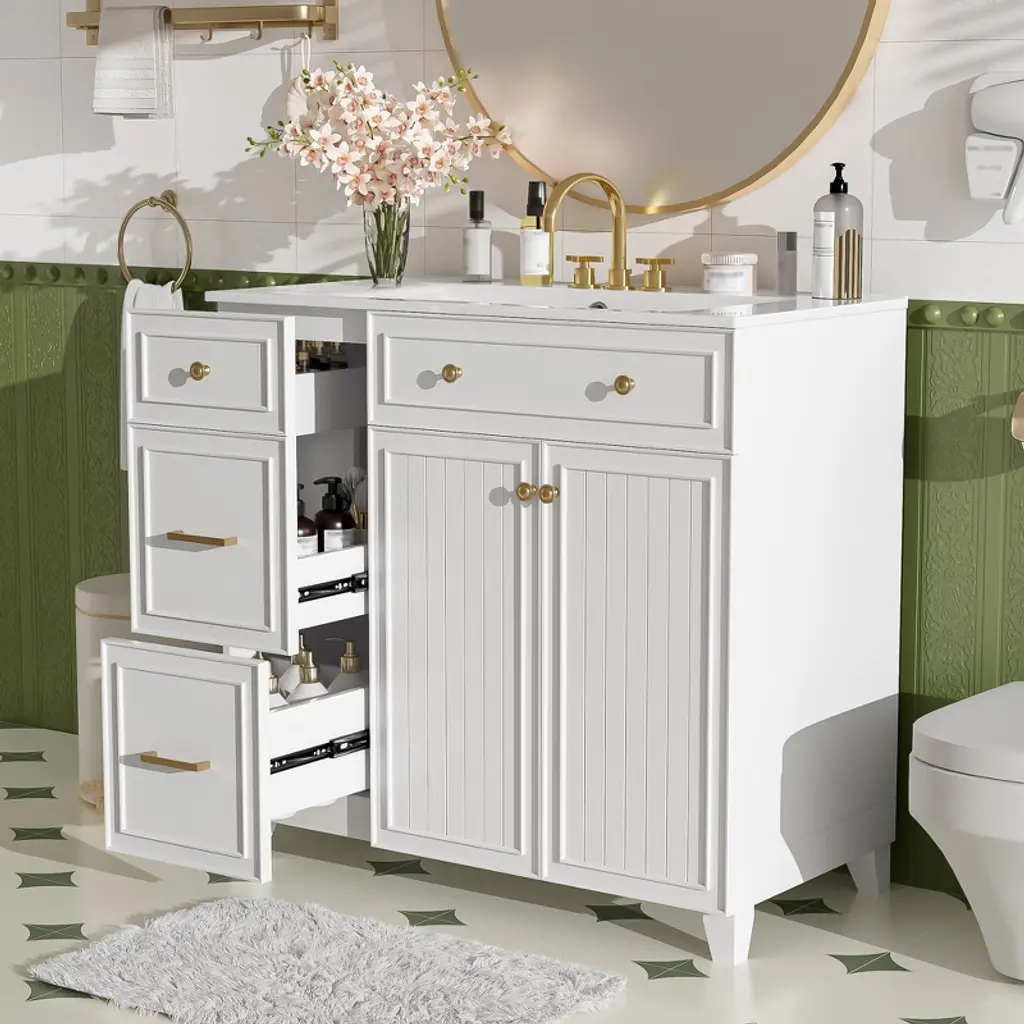 Chicfurnit 36 Inch Bathroom Vanity With Sink Freestanding Storage Cabinet With Soft Close Drawer Adjustable Shelf For Bathroom, White, 18.3"*36"*34"