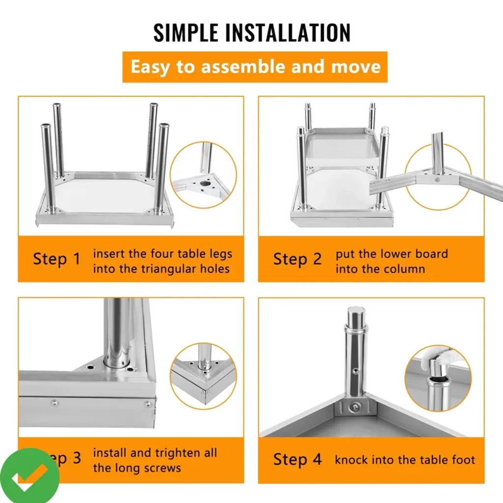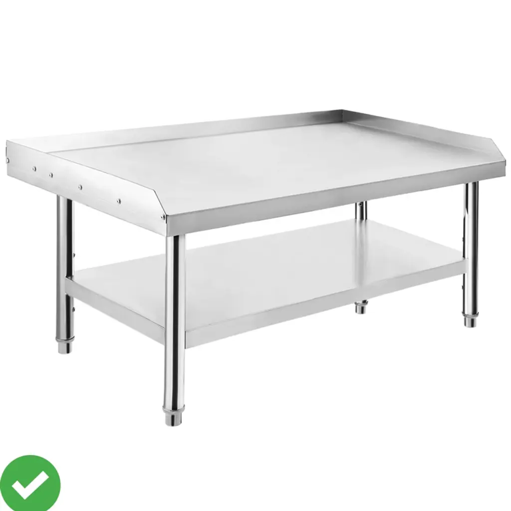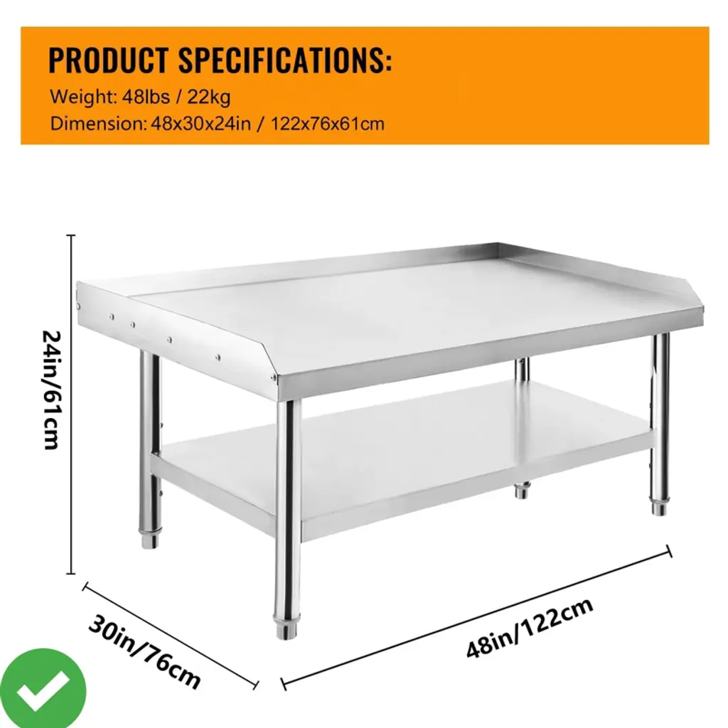 Stainless Steel Equipment Grill Stand Table | 48"x30"x24" | 1000 Lbs Top Shelf Capacity, 220 Lbs Bottom Shelf | Adjustable Legs with 2" Edge Baffle | for Hotels, Homes, Commercial Kitchens.