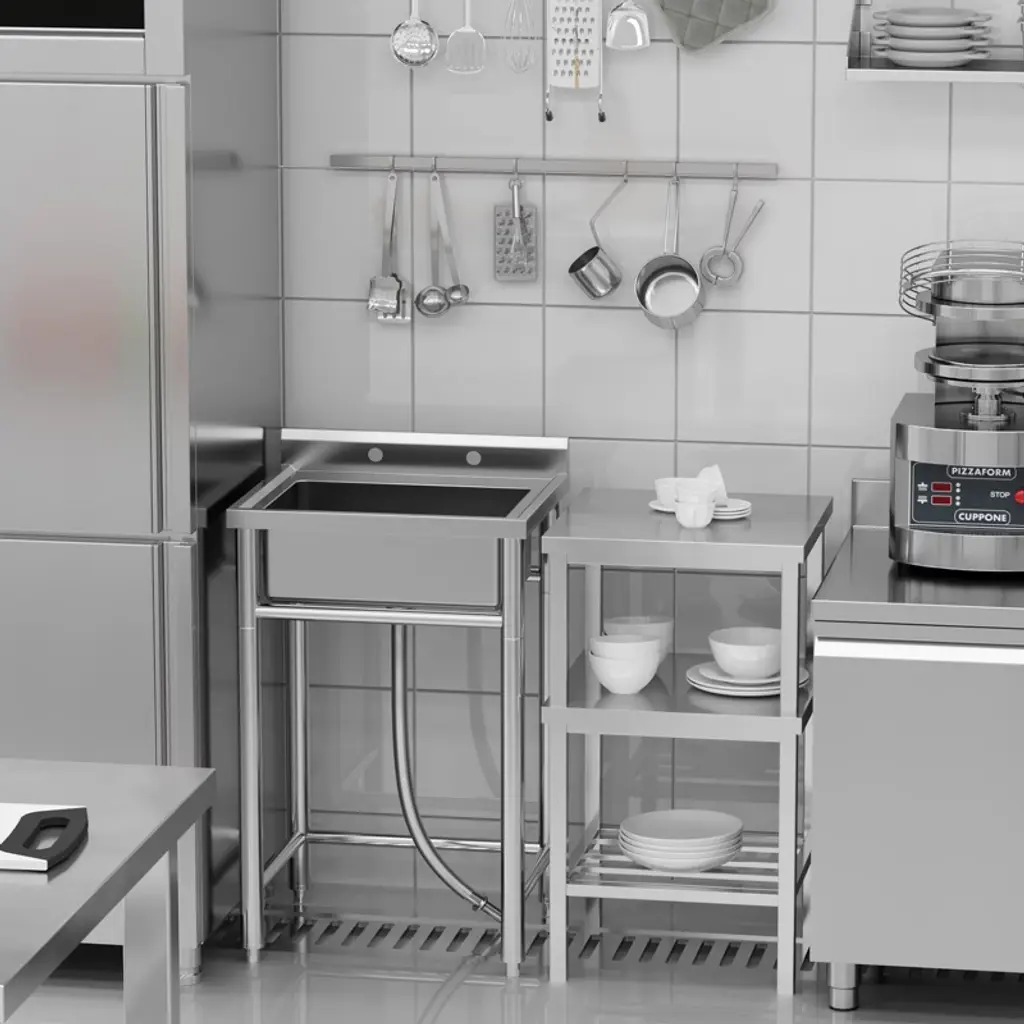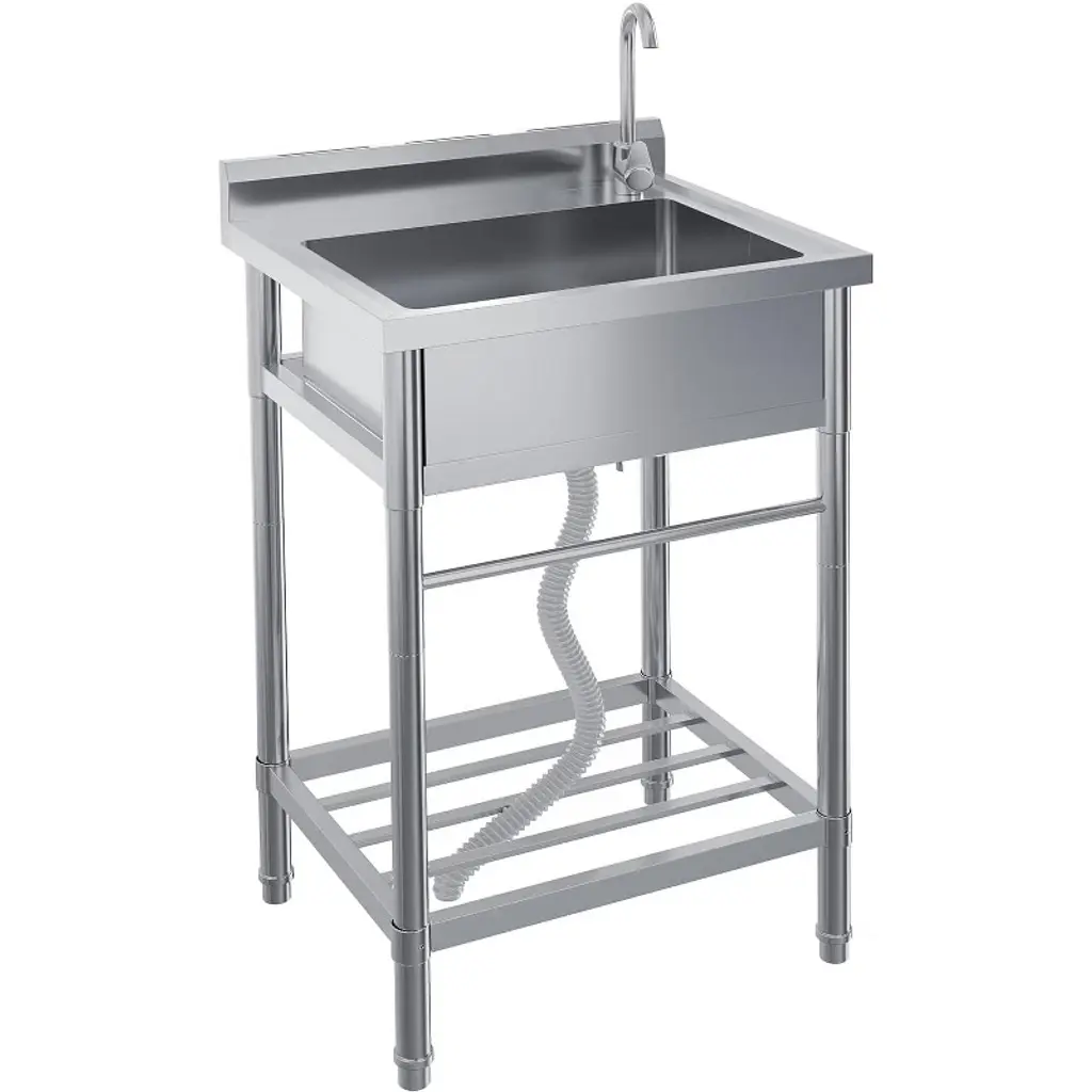 Commercial Stainless Steel Single Bowl Utility Sink With Faucet, Free Standing Deep Basin, Backsplash & Bottom Shelf