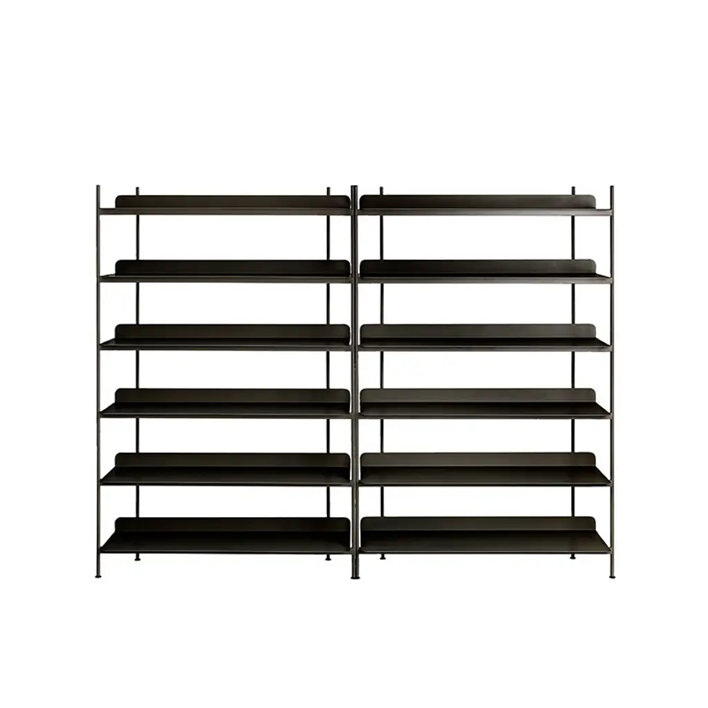 Compile, designed by Cecilie Manz, is a minimalist and functional shelving system that consists of simple laser-cut steel shelves and dividing tubes. The visually appealing design features a matt, powder-coated finish and round corners that give it a light and airy appearance. Sturdy Compile serves as a room divider, individual shelf module as well as a large storage system both in domestic and public environments.