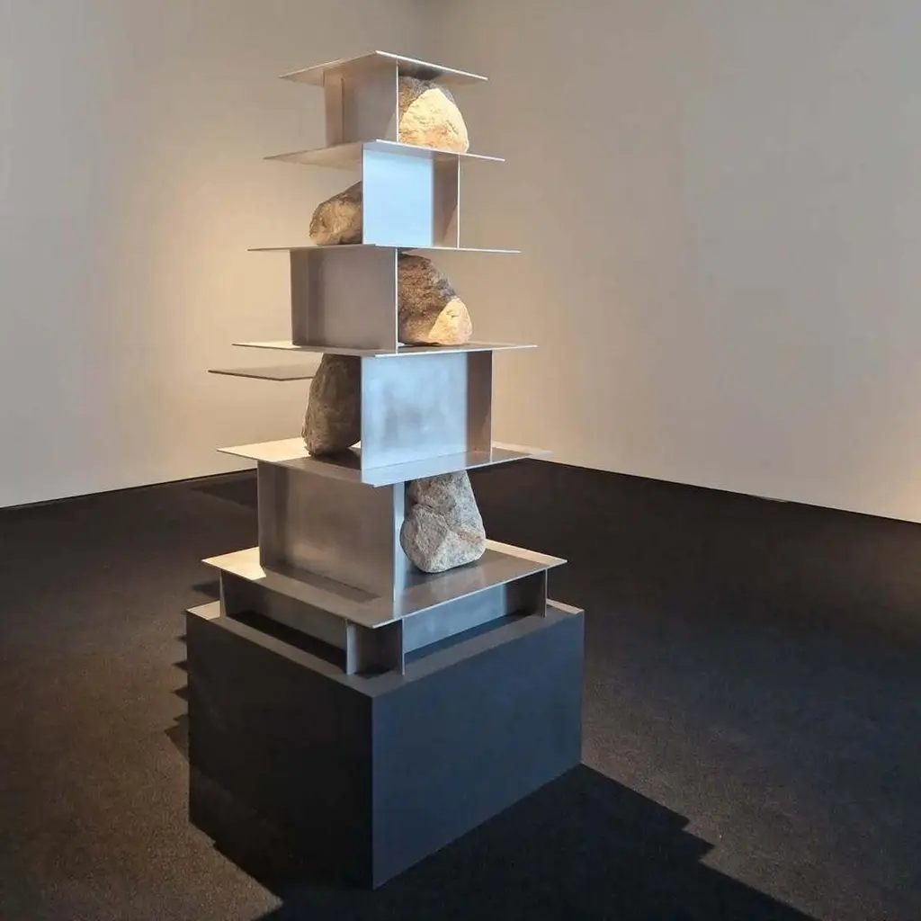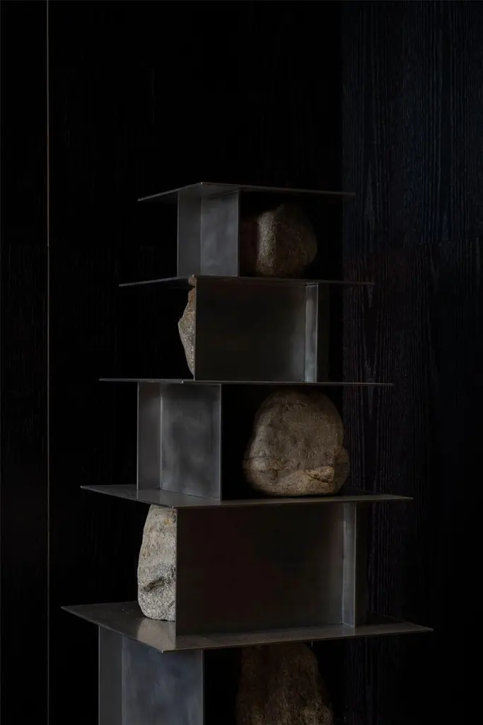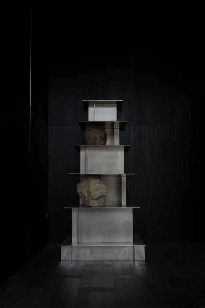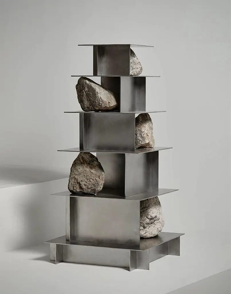Proportions of Stone Shelf Level 05 by Lee SisanDimensions: W 64 x D 59 x H 110 cmMaterials: Stainless steel, natural stoneEach piece is made to order and uses natural stones, so please expect some variability in design.Is constructed by stacking stainless steel plates and stones. Lee Sisan is a designer and artist based in Seoul, South Korea. He majored in interior design to explore the relationship between nature, artifact and humans. He identifies the essence of the material and make form of refined language. He conducts experiments in which man-made beings coexist in harmony with nature and maintain balance.