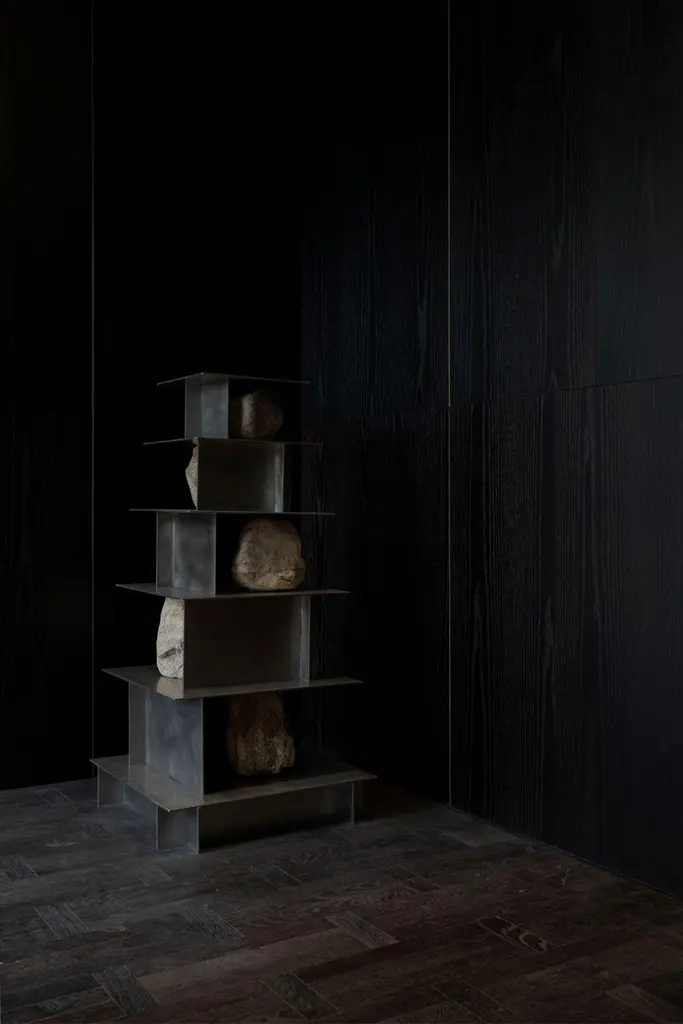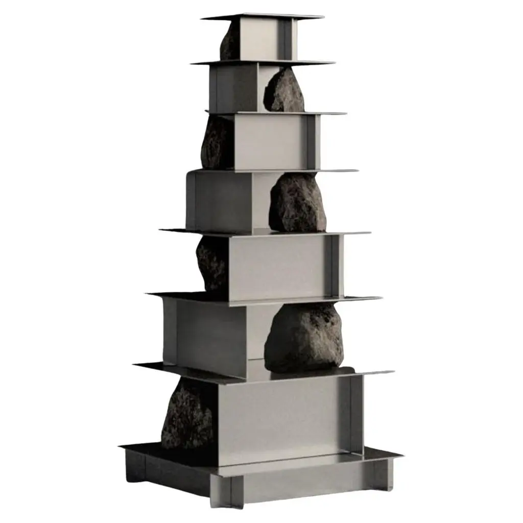 Contemporary Five Level Stainless Steel Shelf With Natural Stones By Lee Sisan