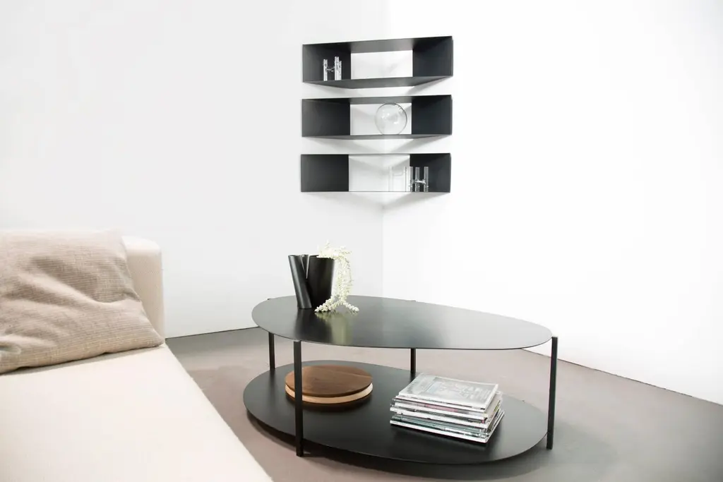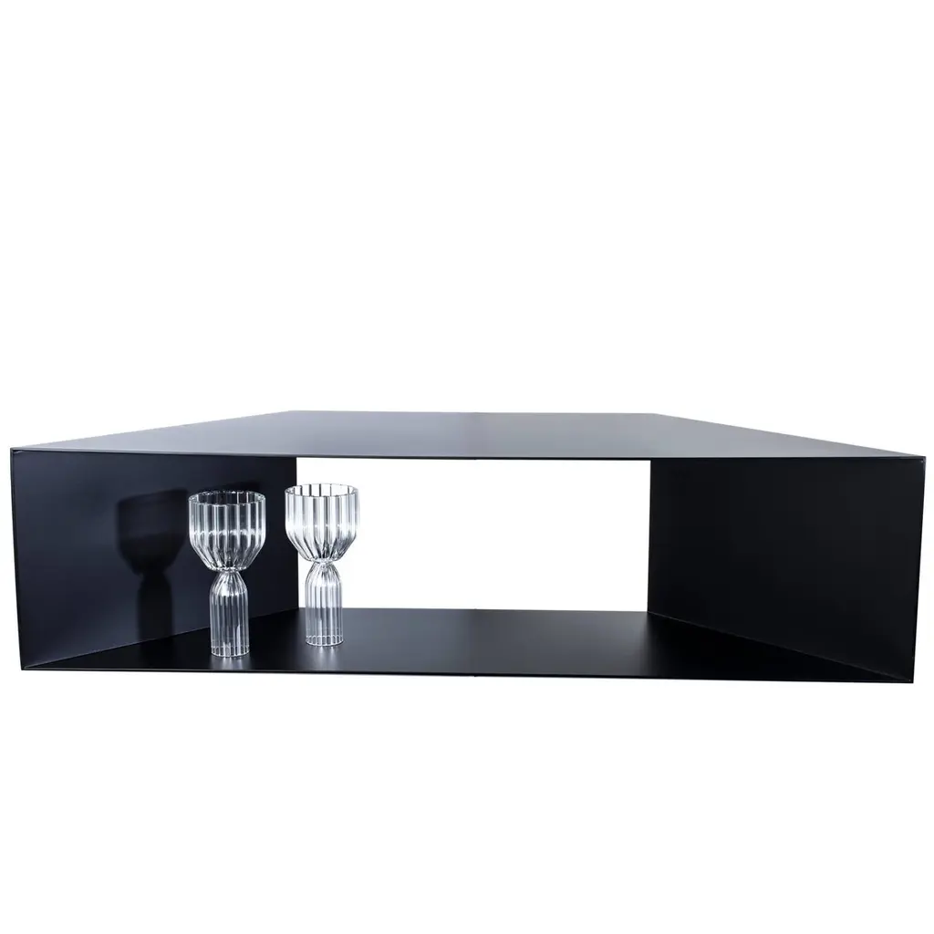 Contemporary Minimal Sculptural Metal Black Corner Shelf, Usa, In Stock
