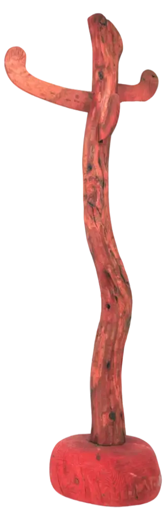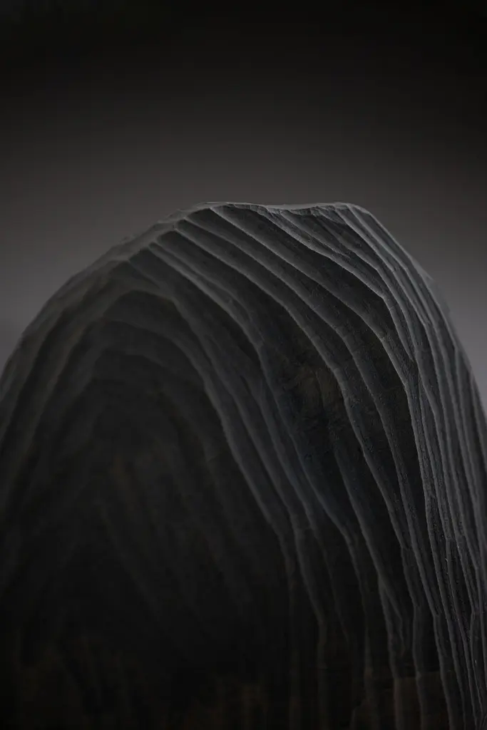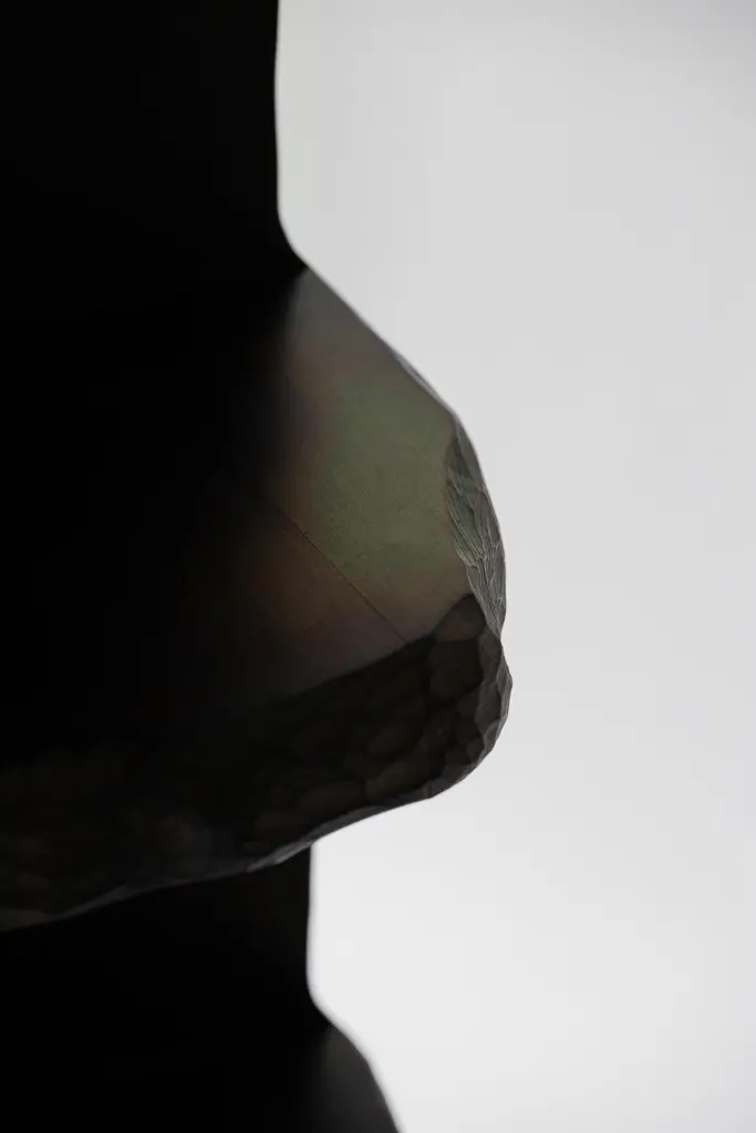 Intuitive Archaisme is a collection of furniture whose design and manufacturing process is based on the primitive instinct of assembling shapes to create a structure. The wood is worked with a gouge, revealing its structure as the tool passes over it. The object takes shape as a result of repeated, methodical hammering and reveals its singular identity. The tool becomes a mediator of individuation between the material, which reveals its past history through its thread-like structure, and myself, who lets the hammer blows on the tool extract my emotions and soothe my body and mind. The traces of gouge carving recall the flint knapping of a still primitive time, like a kind of necessary call from the earth, for a return to simple things. The raw surface is marked by pastel colours anchored in a collective identification to allow a softer interaction and thus make a relationship with the earth more accessible.