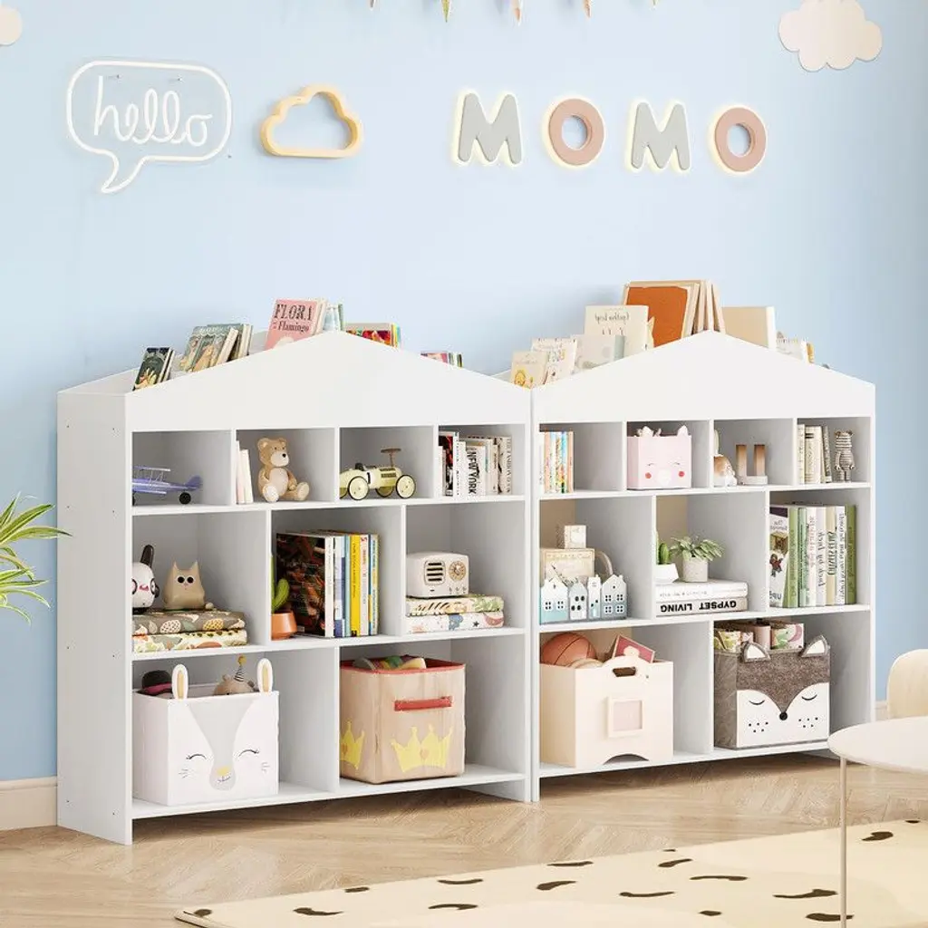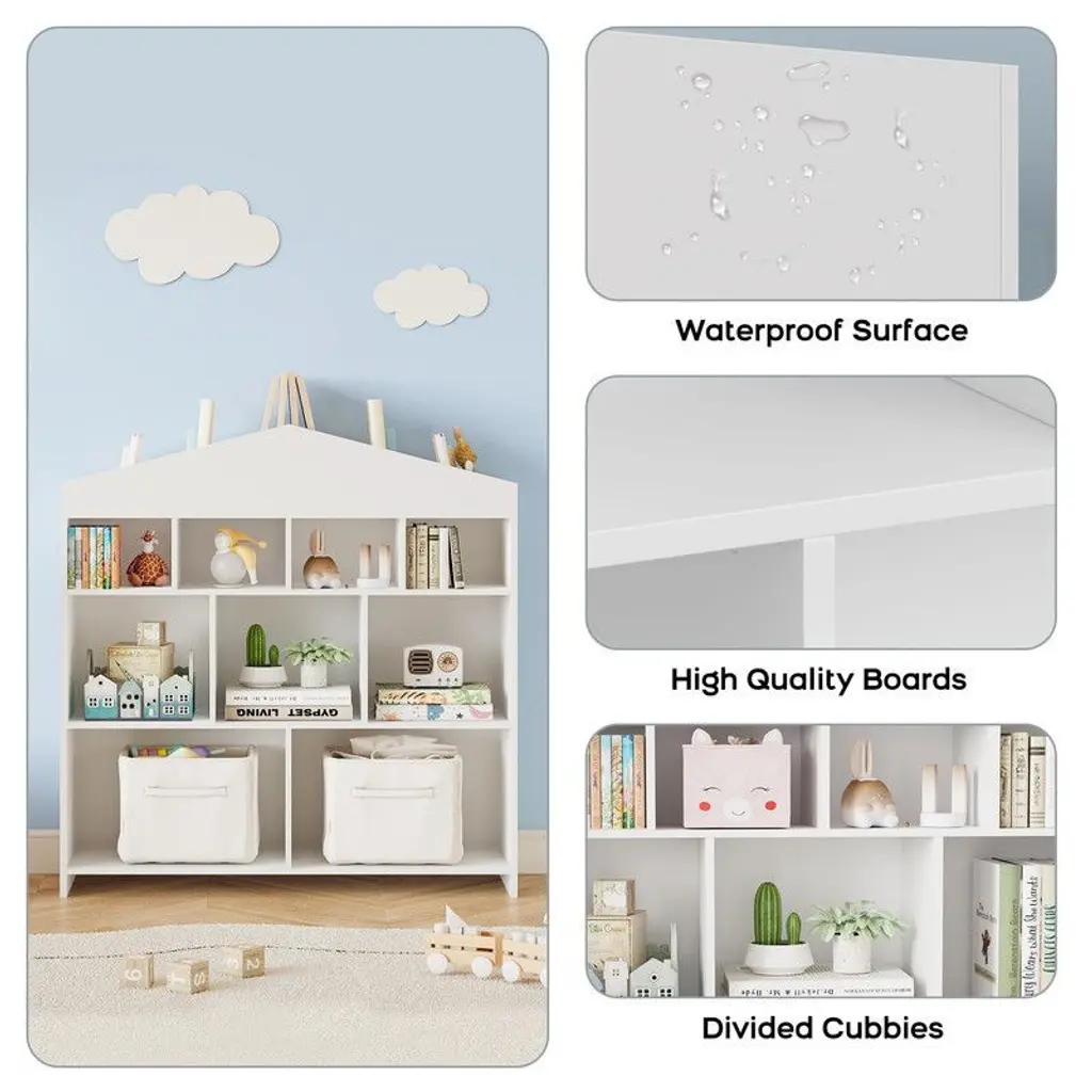 Toy Storage Organizer 9-Cubby Kids Bookshelf 40.7in Width White Bookcase Toddlers Playhouse Cabinet Shelf for Boys Girls Wooden Cubby Storage Toy Shelf for Playroom, Nursery, Kids Room