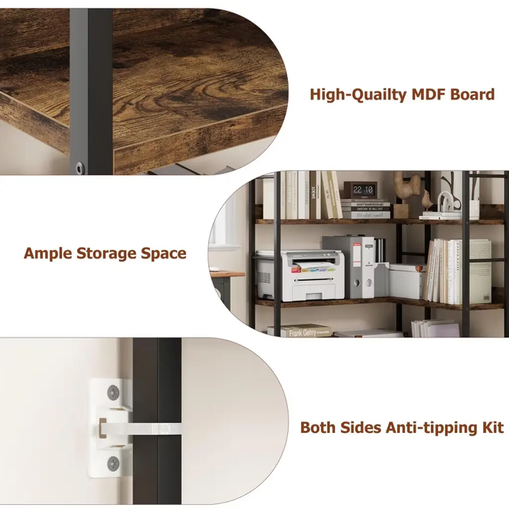 Corner Bookshelf Industrial Bookcase,l Shaped Bookshelf Arched 5 Tier Corner Shelf, Large Bookshelf With Metal Frame,etagere Shelf Corner Display Rack