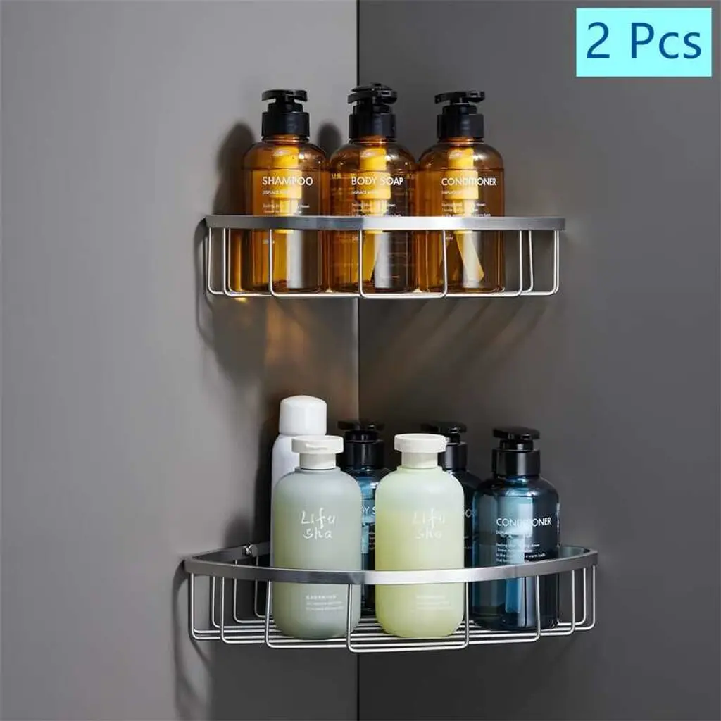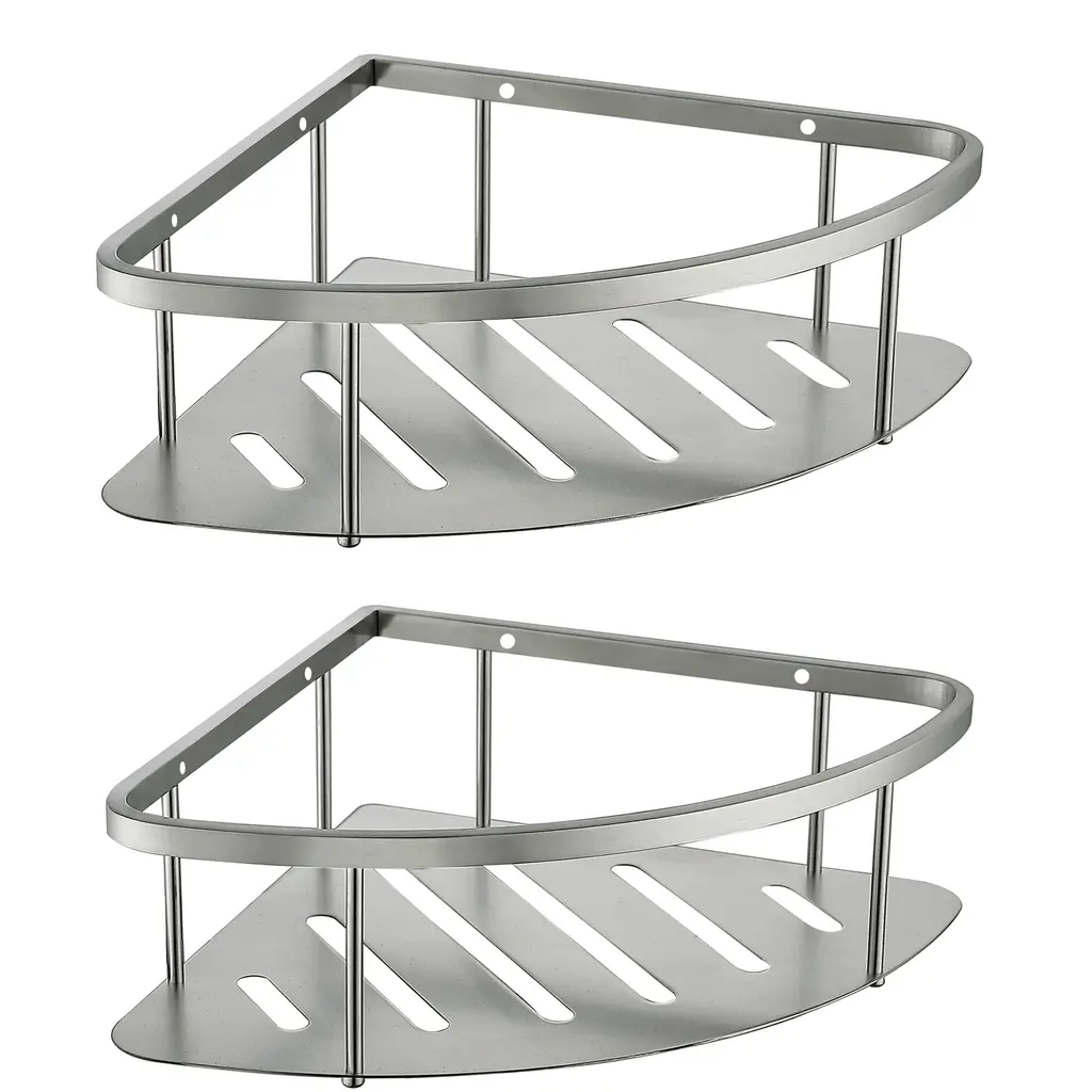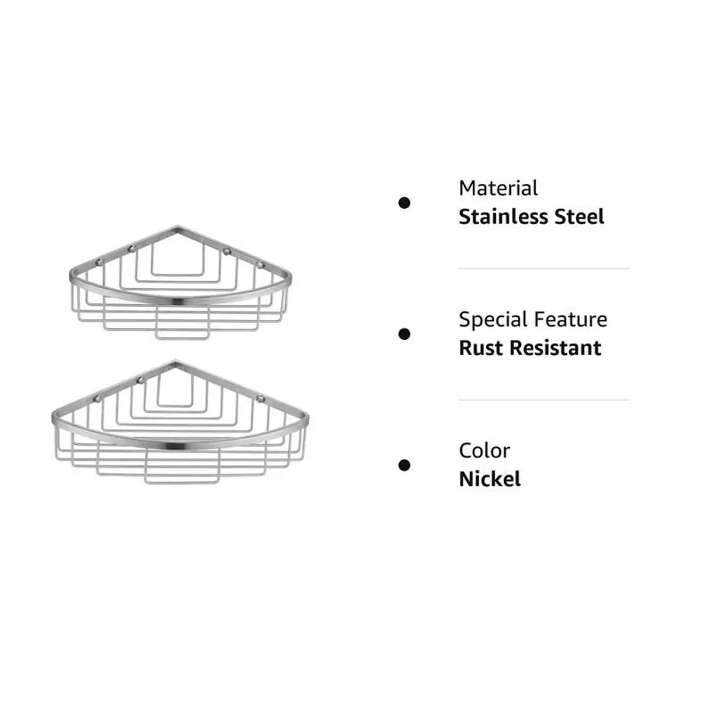 Corner Shower Caddy Shelf Organizer - 9.05"d X 12"w X 3.14"h - Nickel 2-Pack Set