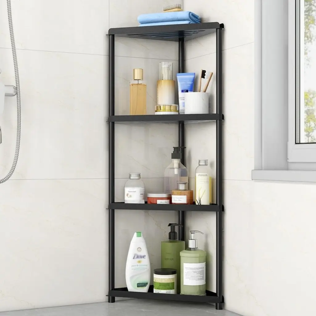 Corner Shower Caddy Stand - Shower Organizer With Soap Holder, Tall Floor Corner Shelf Standing With Adjustable Feet - N/a - Black