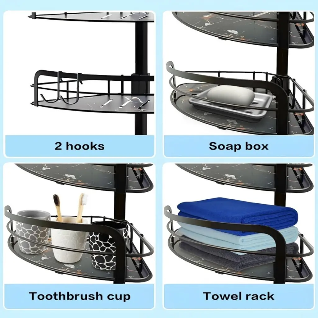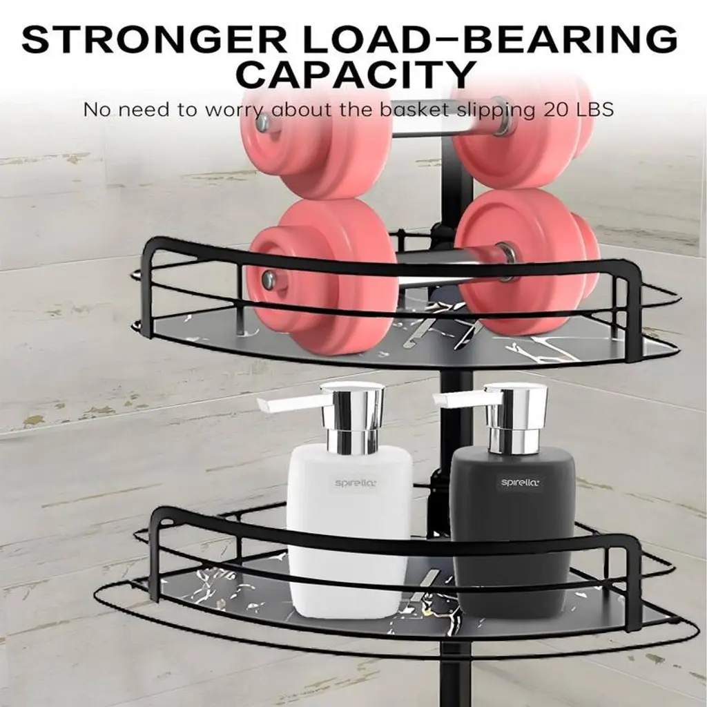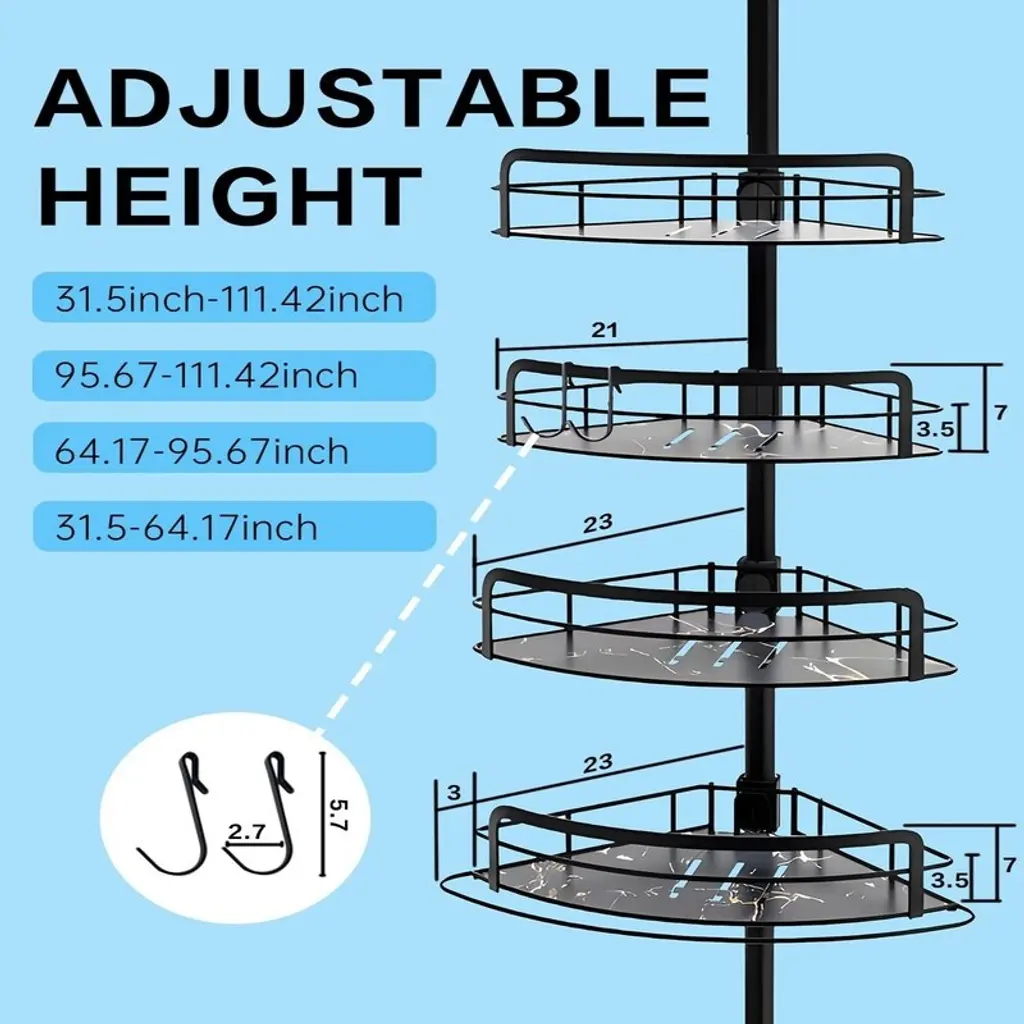 Corner Shower Caddy Tension Pole, Rustproof 4-Tier Bathroom Organizer, Height-Adjustable Bathroom Shelf - Black - Black