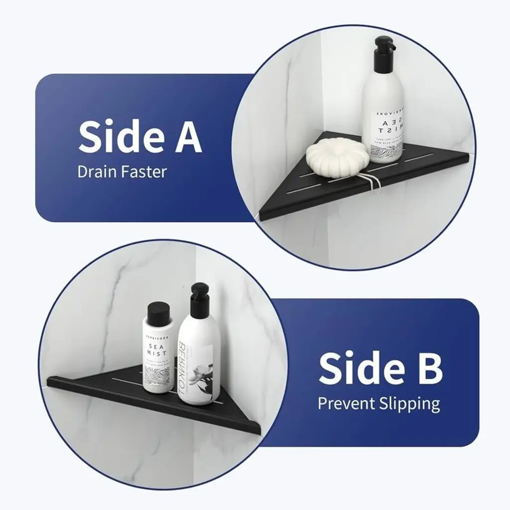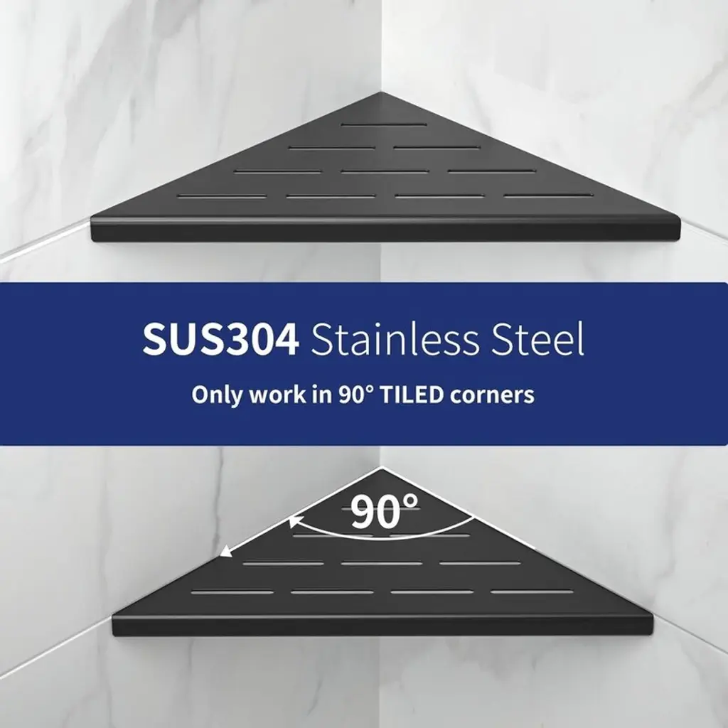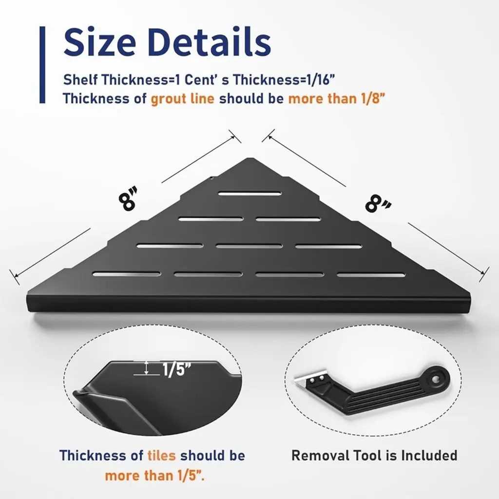 Premium 304 Stainless Steel – Made with US ASTM-certified 304 stainless steel for superior rust & corrosion resistance, outperforming standard stainless steel in humid environments.Dual-Function Installation – Features two distinct sides: Side A offers maximum storage space with enhanced drainage, while Side B provides slip-proof security—choose based on your needs.Sleek Modern Design – Minimalist style available in two elegant finishes to seamlessly match any bathroom tile and decor.Secure Tile-Embedded Mounting – Requires grout installation (no adhesive hooks), ensuring a permanent, wobble-free hold that won’t loosen under pressure from heavy bottles.Precision Engineering – With a 1/16" thickness, designed for tiles thicker than 1/5" and grout lines over 1/8" for flawless, long-lasting integration into your shower walls.