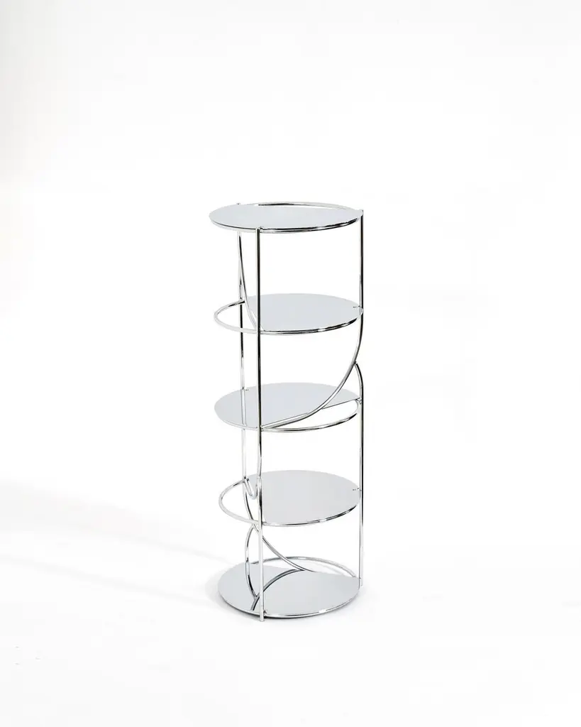 Cosette 110 Shelf by GIROTTI ENRICODimensions: D 40 x H 110 cmMaterials: Galvanic Structure, Metal.Weight: 14 Kg. Enrico Girotti is an industrial designer who has found in the word “maker” his most authentic form of expression. Graduated in Industrial Design from the IUAV University of Venice, in his creations, he has established a strong connection between the creative and production processes, blending technical training with his personal research. He expresses himself in a continuous analog cross- disciplinary exchange between functions and forms. He engages in design both in the industrial and artisanal realms, striving to bring forth and incorporate the hidden connections between the concept, the context, and the people in the physical manifestation of the object. This integrated process, in which every occurrence is not random, rejects randomness. In 2017, he founded the brand lapiegaWD , as a direct and unmediated design initiative. This brand represents an ever-evolving synthesis of his research on materials, processes, forms, and relationships. In 2023, he founded EDIZIONI ENRICO GIROTTI, a platform to freely experiment with techniques, craftsmanship, and design, creating small series, uniquely numbered pieces, and advanced customizations of lapiega products, as well as pre-series.