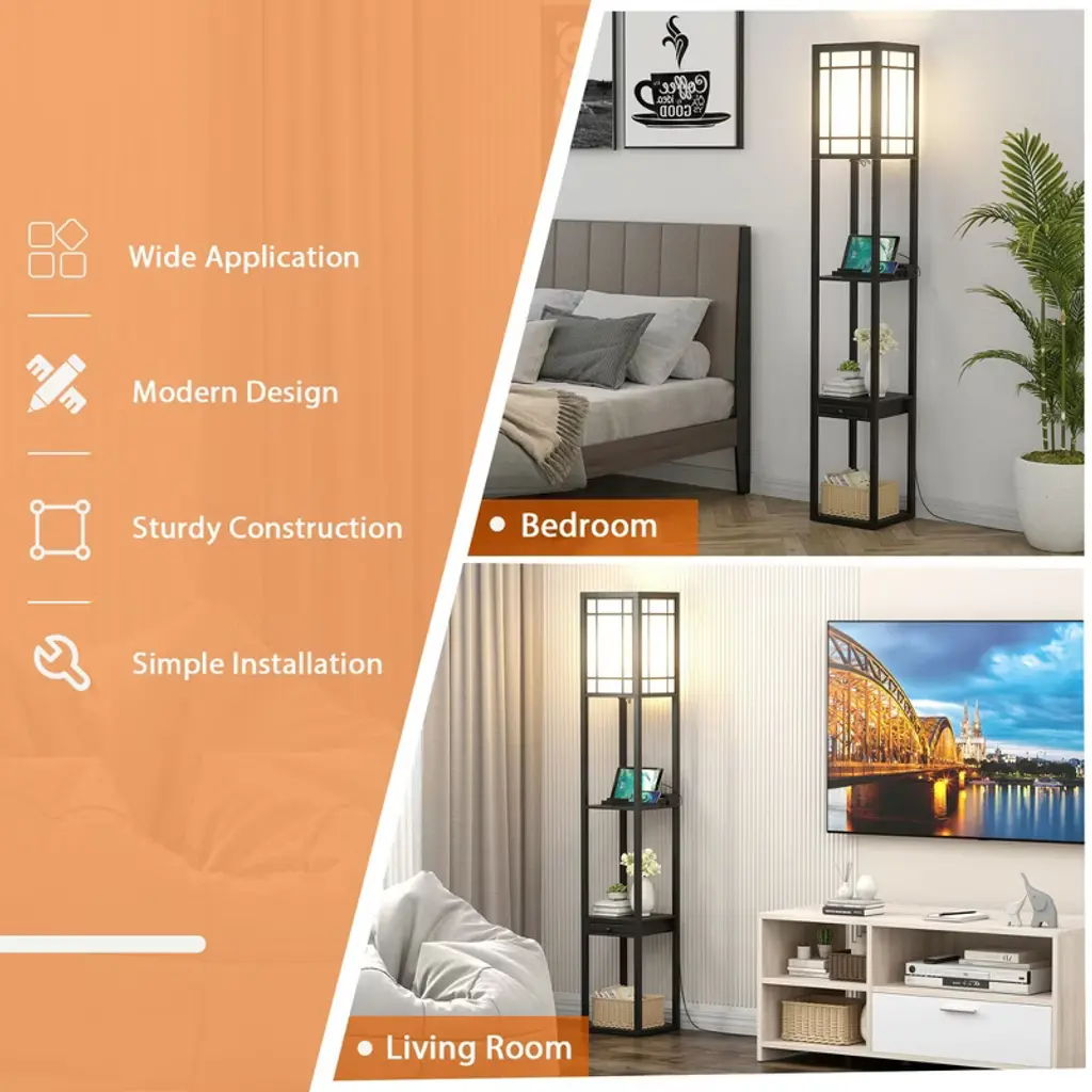 Costway Modern Standing Shelf Floor Lamp W/ 1 Power Outlet & 2 Usb Ports For Living Room