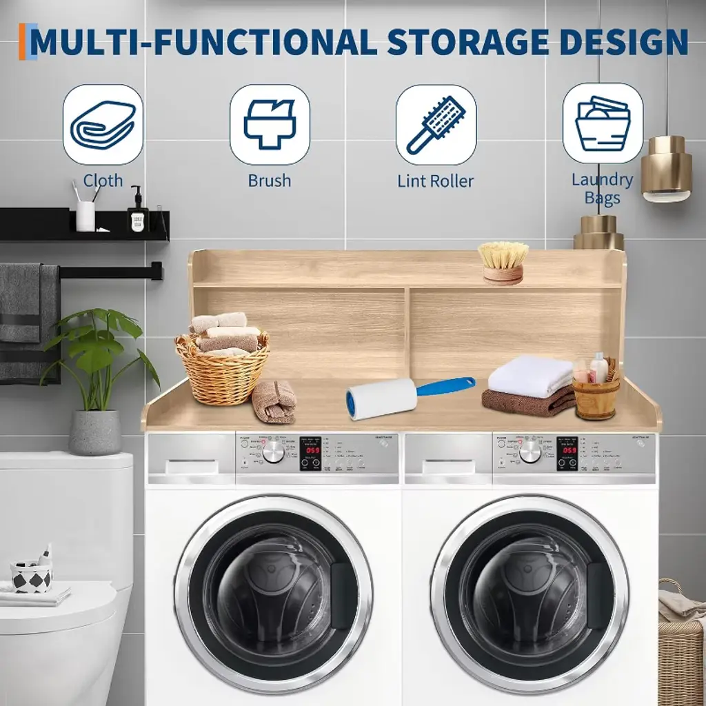 Coucheta 2 Tier Washer Dryer Countertop With Shelf, 54x27.5 Inch Waterproof Wood Laundry Room Topper, Large Washer And Dryer Topper With Storage
