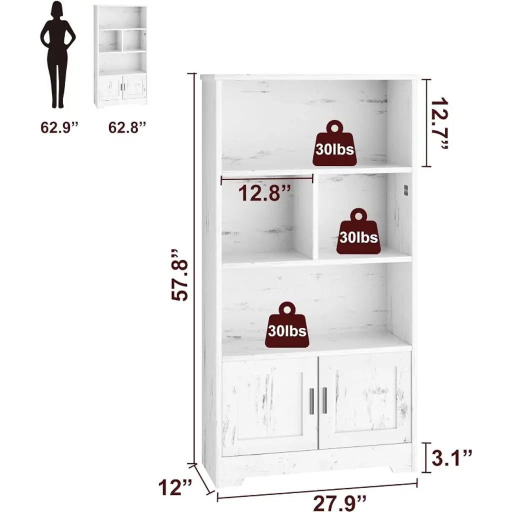 Coucheta 57.8inch Tall 3-tier White Modern Bookcase With Led Lights & Cabinet - Large Storage Shelf For Home