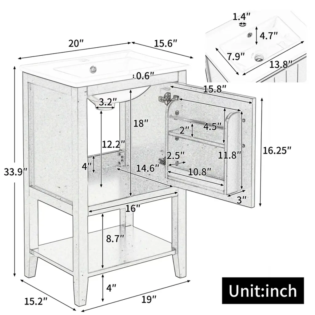Cowlown Black 20-in Bathroom Vanity With Sink, Freestanding Cabinet, Open Shelf & Built-in Storage Rack, Painted Mdf & Solid Wood Frame