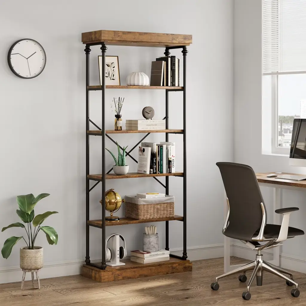 Cuisinsmart 6-tier Industrial Bookshelf, Tall Wood And Metal Bookcase With Sturdy Frame, Open Display Shelf And Storage Organizer, Brown