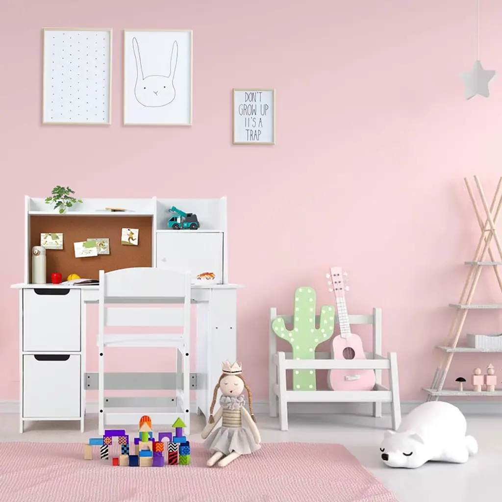 Cuisinsmart Kids Desk And Chair Set, Wooden Study Table With Storage Shelf, Bulletin Board For Children 3-8