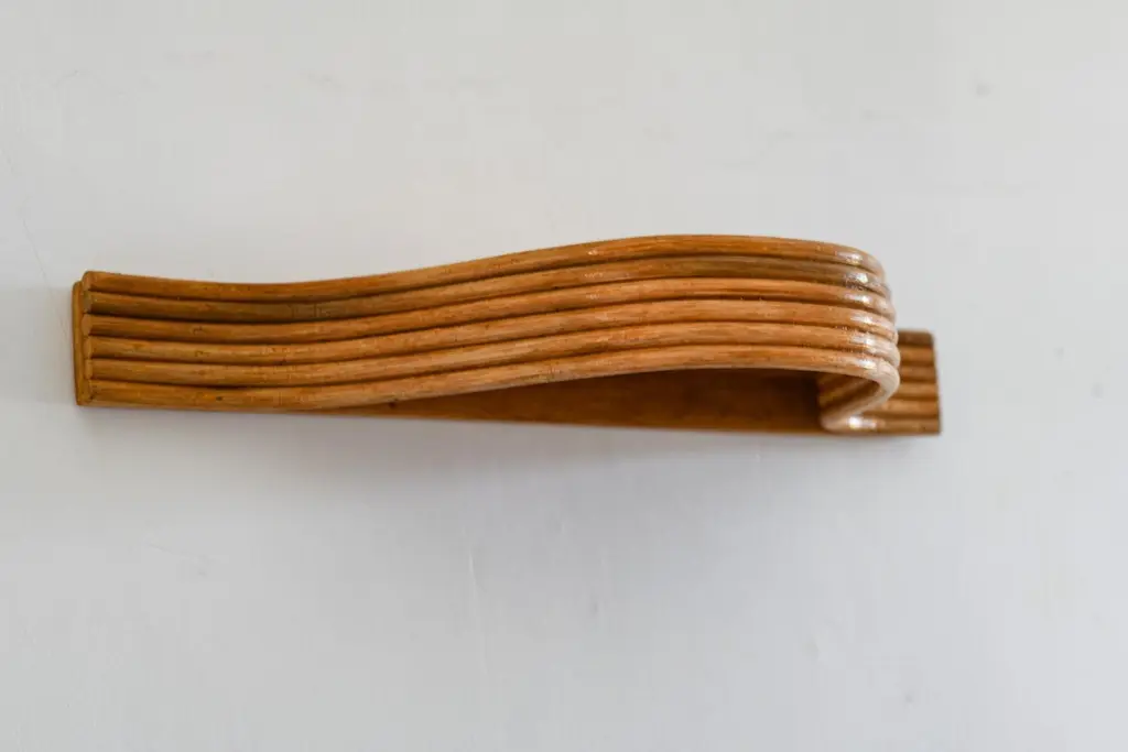 Indulge your space with the unique aesthetic of this Pencil Reed Rattan Curved Floating Shelf. Crafted from natural materials, this shelf exudes quality and longevity. Its curved design adds a touch of sophistication and artistry to any room. Elevate your decor with this exclusive piece.