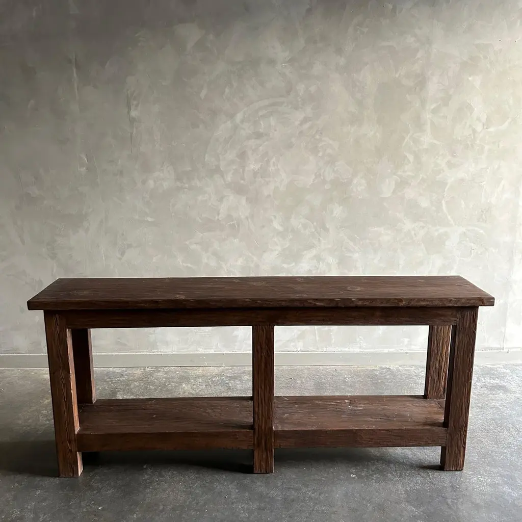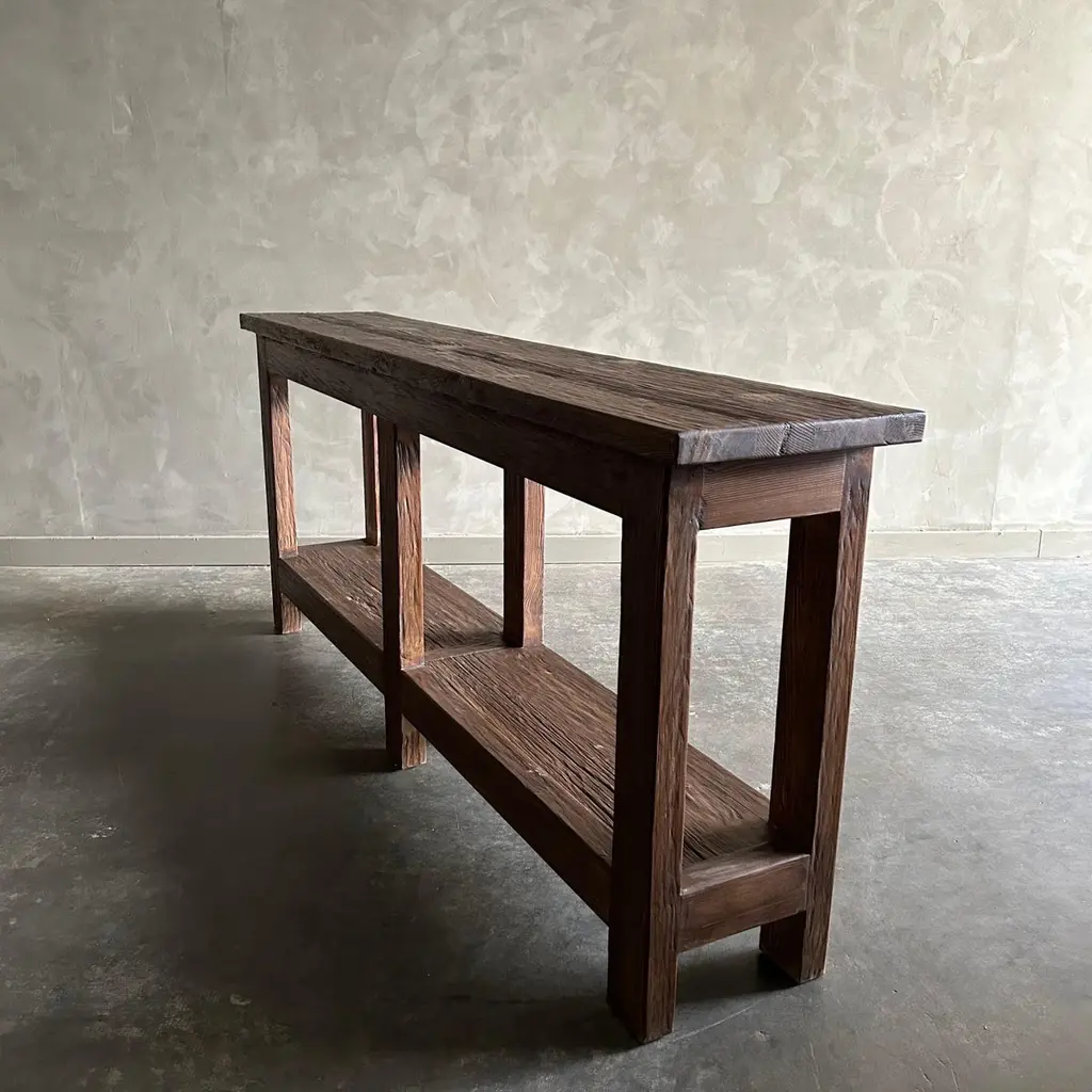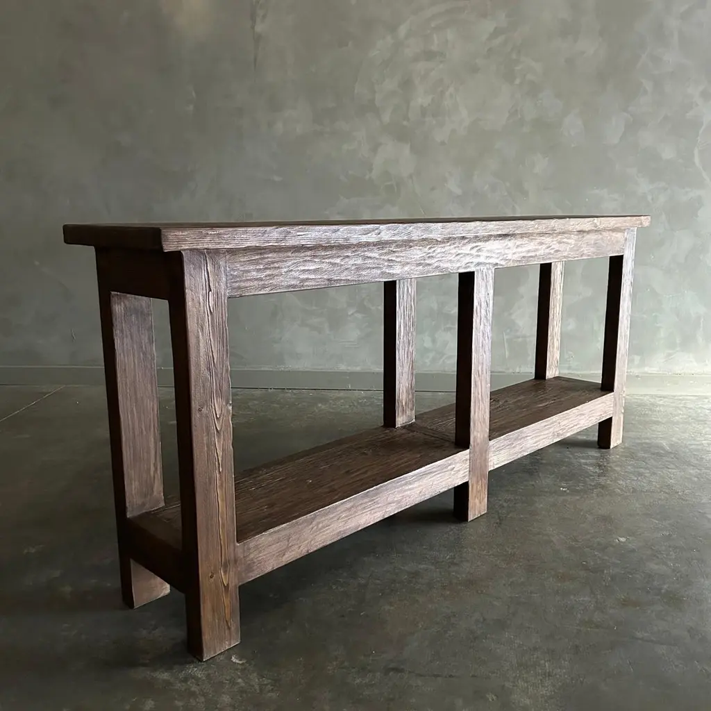 Custom Reclaimed Elm Wood Console Table In Dark Finish With Shelf