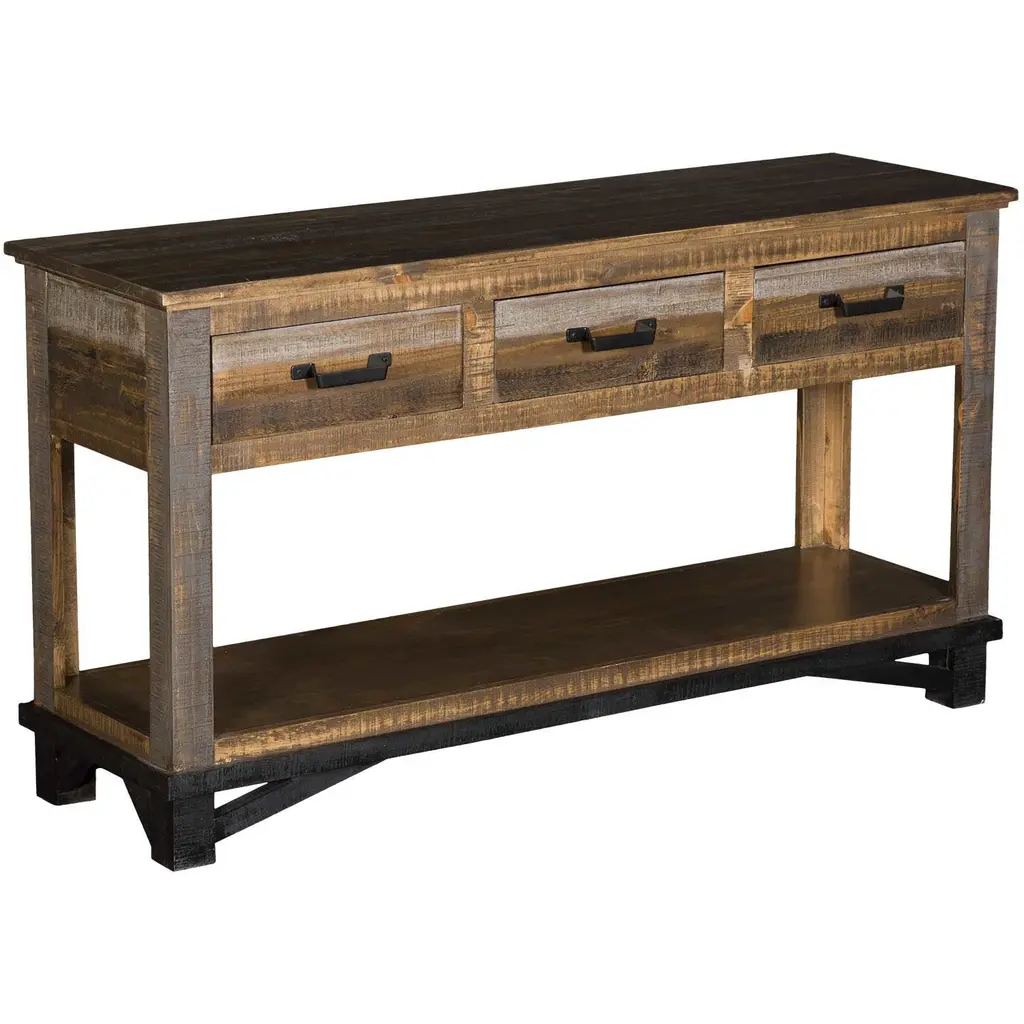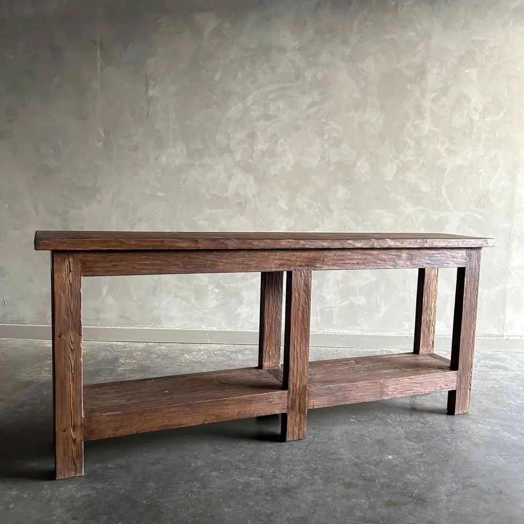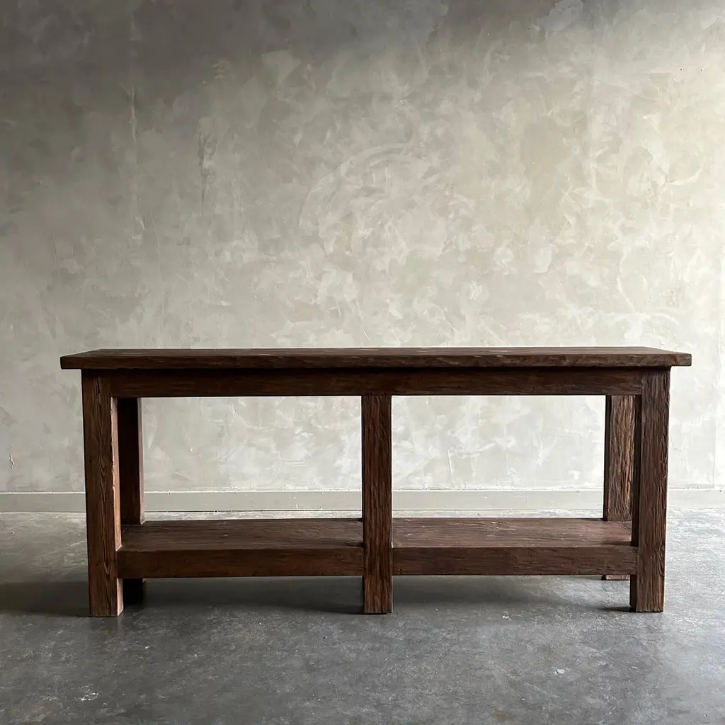 Custom Reclaimed Elm Wood Console Table In Dark Finish With Shelf