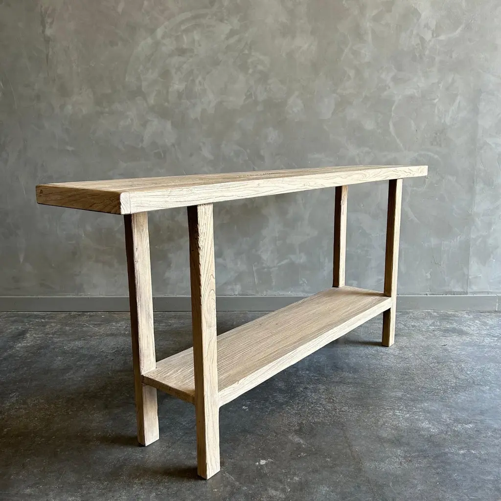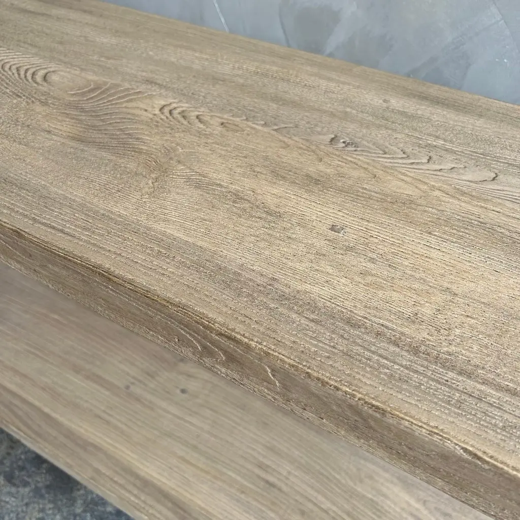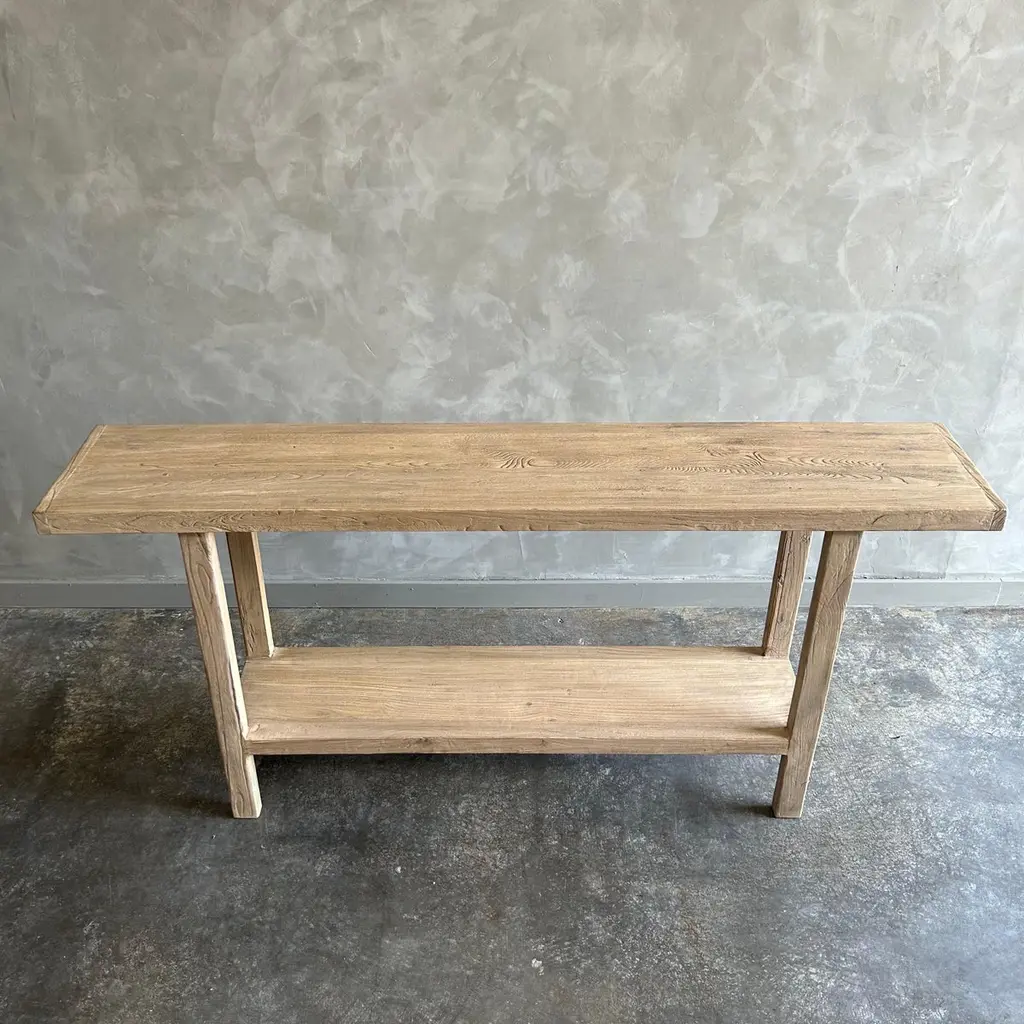 Bloom Home inc has over 2000 items in stock ready for immediate shipping, scroll down to view all of our items!Elm console 71”w x 14”d x 33.5”hOne of a kind custom made Elm Wood Console Table Made from Vintage reclaimed elm wood. Beautiful antique patina, with weathering and age, these are solid and sturdy ready for daily use, use as an entry table, sofa table or console in a dining room. Great in a living room with baskets or ottomans stored under. Each piece is truly unique and one of a kind with different characteristics in the wood.