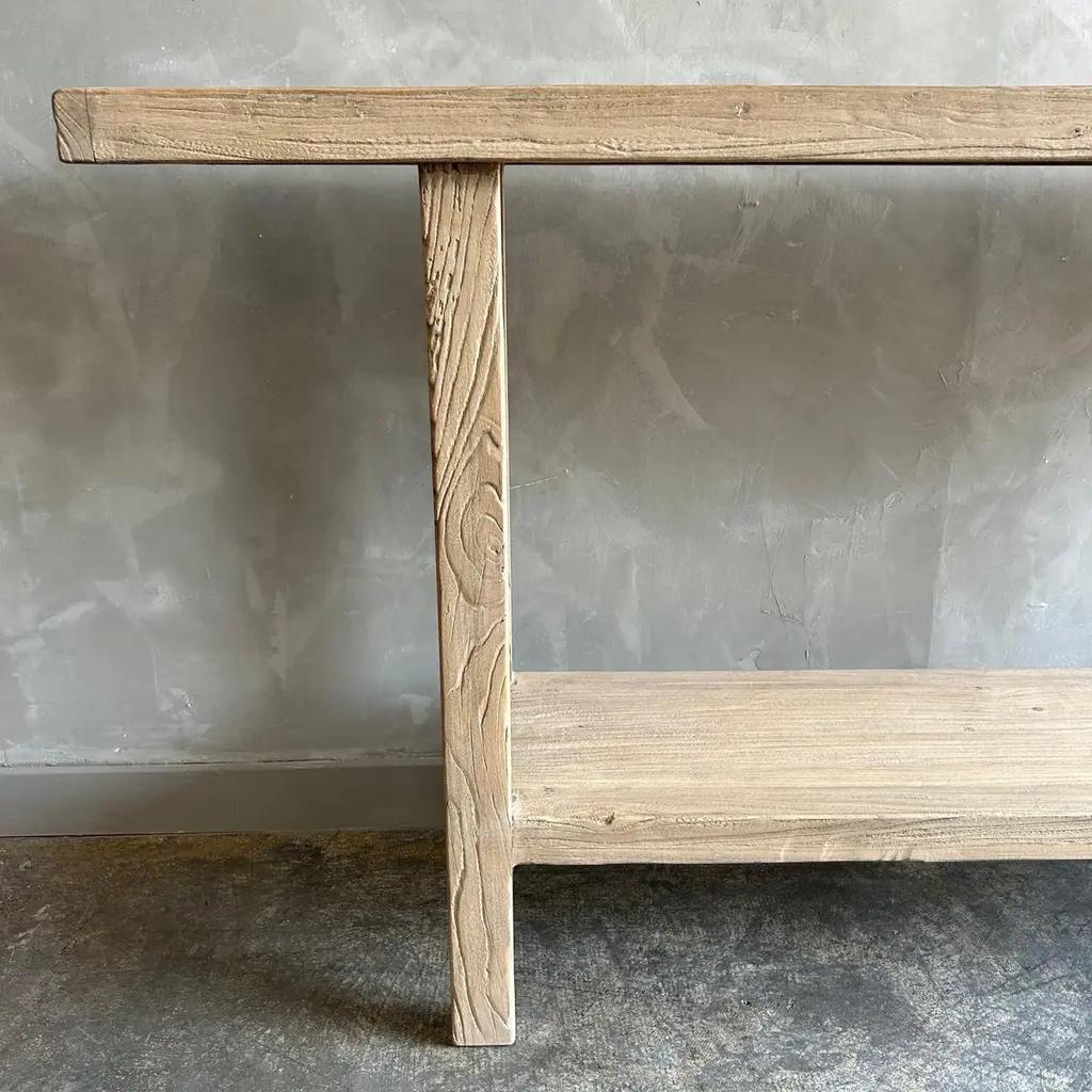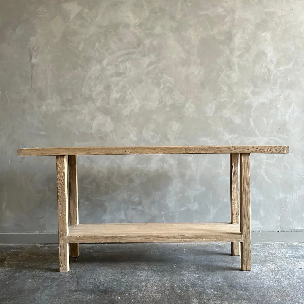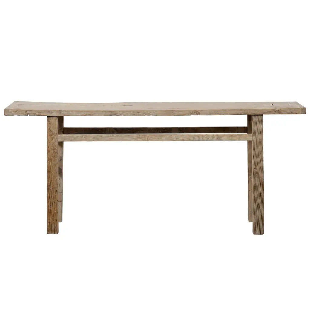 Bloom Home inc has over 2000 items in stock ready for immediate shipping, scroll down to view all of our items!Elm console 71”w x 14”d x 33.5”hOne of a kind custom made Elm Wood Console Table Made from Vintage reclaimed elm wood. Beautiful antique patina, with weathering and age, these are solid and sturdy ready for daily use, use as an entry table, sofa table or console in a dining room. Great in a living room with baskets or ottomans stored under. Each piece is truly unique and one of a kind with different characteristics in the wood.