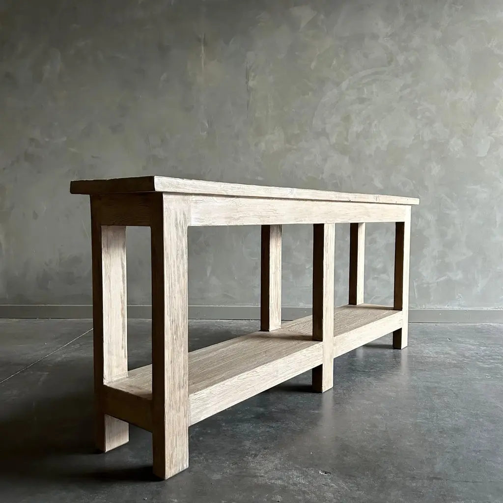 MORI CONSOLE NATURAL FINISHNatural reclaimed elm wood console that is beautifully crafted and serves as the perfect storage solution for any space. Since this is made from vintage reclaimed materials, there may be some imperfections in the piece or grain of the wood. We like to call that character. Please note this item is handcrafted and slight variations can be expected from piece to piece.Size: 80”w x 18.5”d x 30”