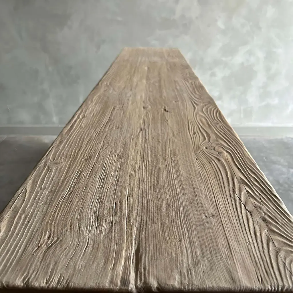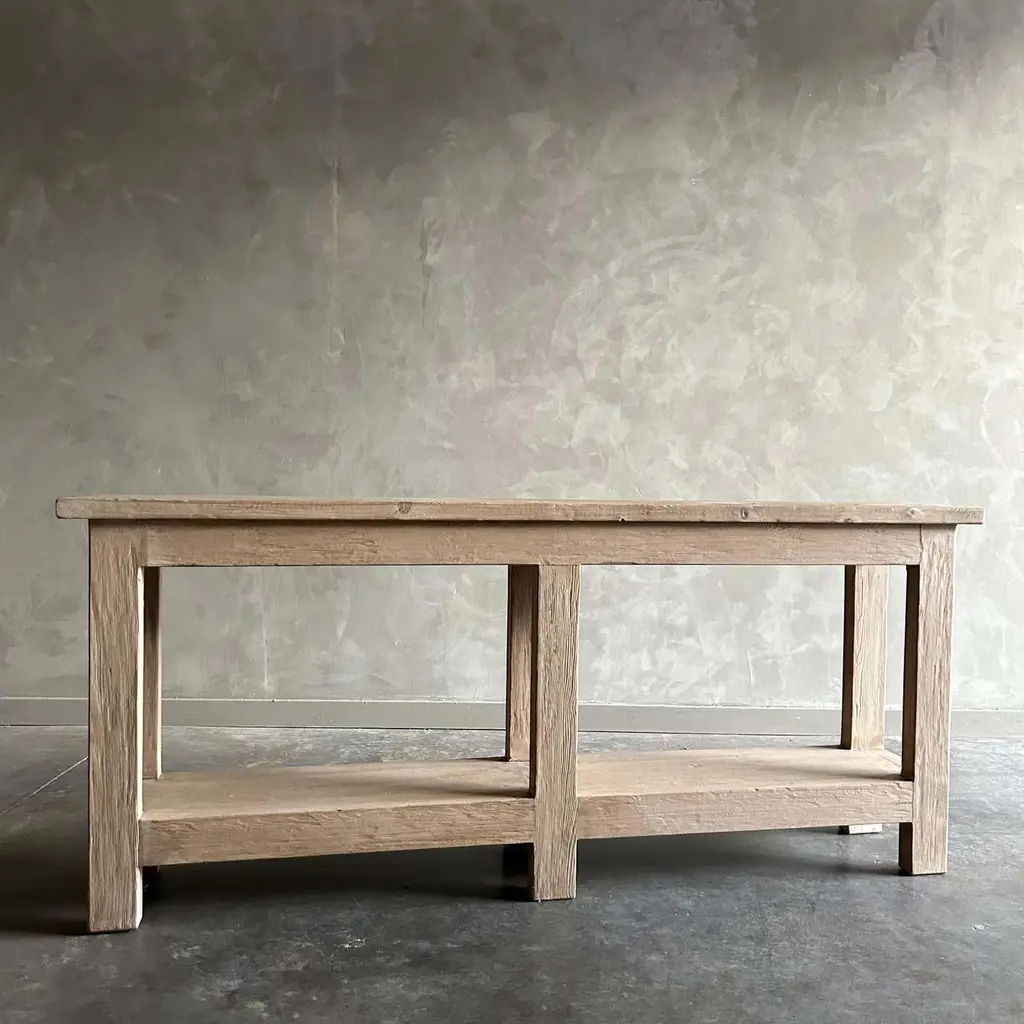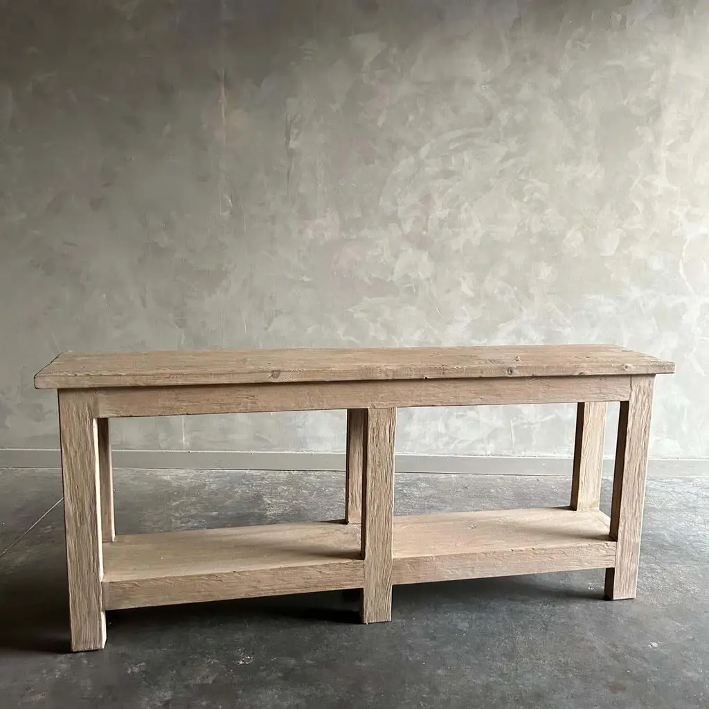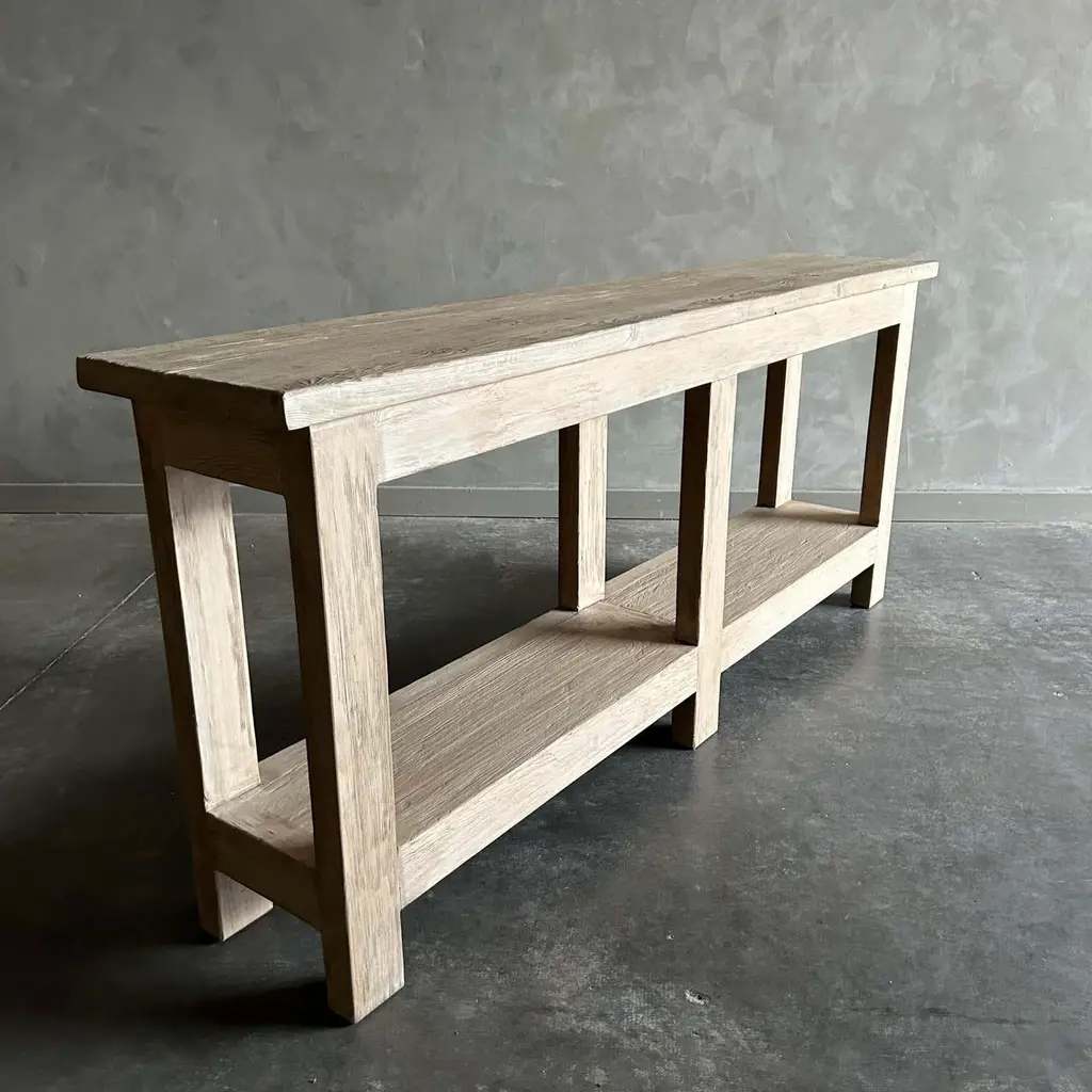 MORI CONSOLE NATURAL FINISH Natural reclaimed elm wood console that is beautifully crafted and serves as the perfect storage solution for any space. Since this is made from vintage reclaimed materials, there may be some imperfections in the piece or grain of the wood. We like to call that character. Please note this item is handcrafted and slight variations can be expected from piece to piece. Size: 80”w x 18.5”d x 30”