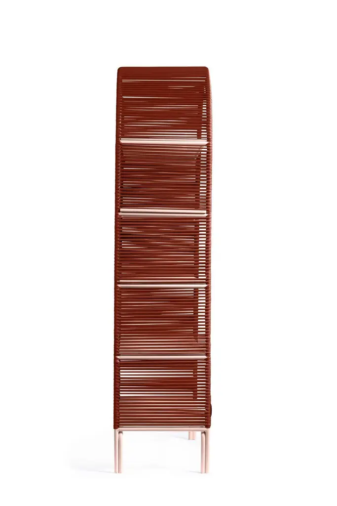 Indoor use.The Marimondas Shelf’s flowing curves and colorful accents evoke the joyous movement and celebratory atmosphere of the Barranquilla Carnival. Its design pays homage to the playful and mischievous marimonda characters, as well as the regal arches and ornate elements of the carrozas de reinas, adding a touch of festivity and cultural richness to any space. Whether used to display decor or as a standalone centerpiece, this piece transforms interiors with its lively and artistic appeal.Marimondas, a unique and vibrant shelf design by the renowned Dutch duo, Visser & Meijwaard Studio. Drawing inspiration from the iconic carrozas de reinas (queen’s floats) and the lively spirit of the Barranquilla Carnival, this new piece is a captivating blend of cultural richness and innovative design. The Marimondas Shelf embodies the exuberance of Barranquilla’s iconic carnival, with bold organic shapes and intricate textures reminiscent of the elaborate floats that parade through the streets. Woven using two distinct techniques with Ames’ signature upcycled PVC material, the shelf bursts with energy and elegance, capturing the vibrant essence of Colombia’s heritage. It not only complements Ames' dynamic home goods but also acts as a statement piece that highlights their unique designs.