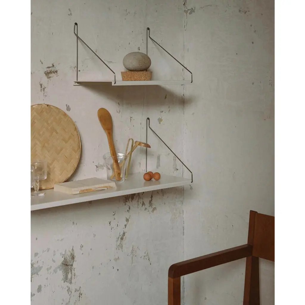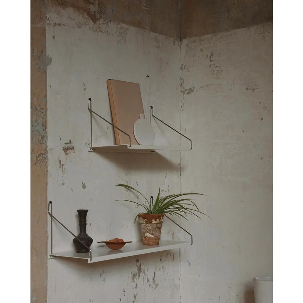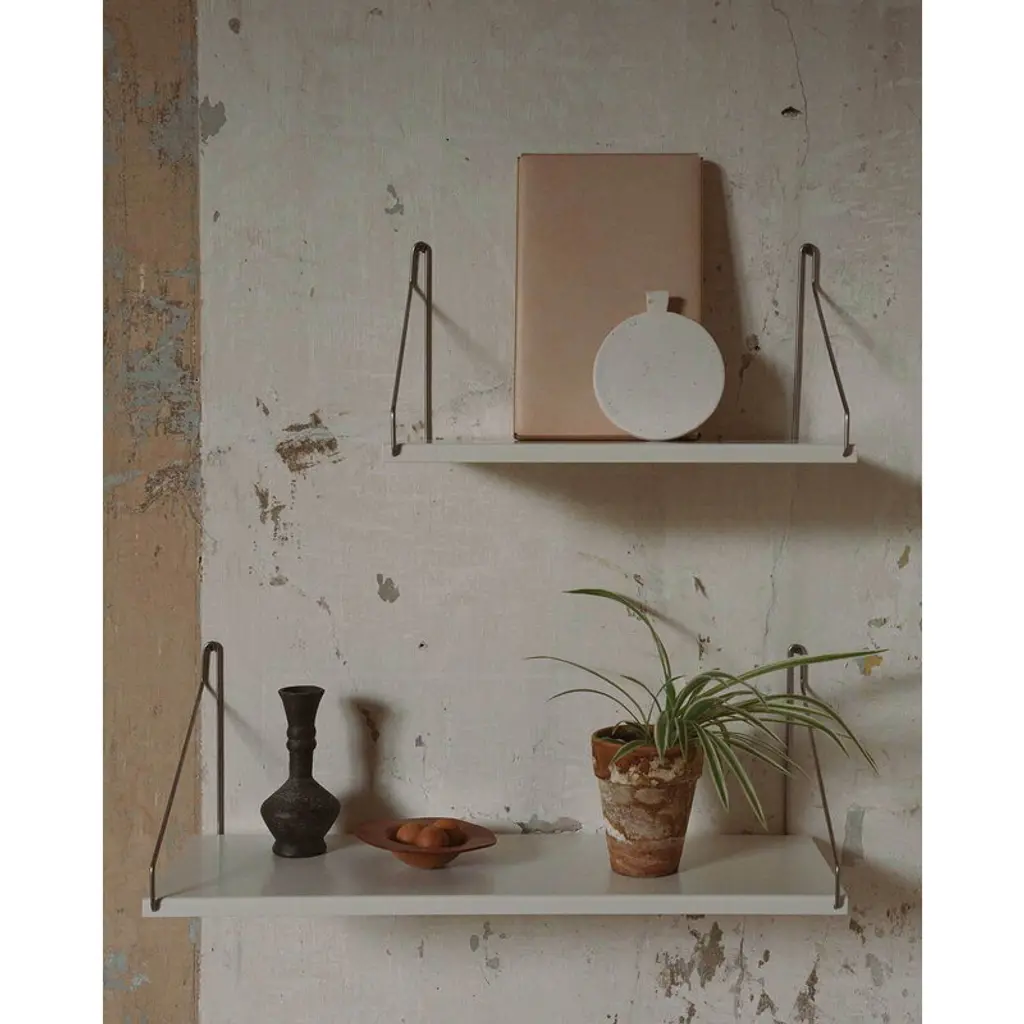 Frama's D20 wall shelf is a beautiful reinterpretation of Scandinavian shelves from the 1950s. The shelf made of powder-coated steel and held by two delicate brackets is more than pleased to display your favorite items on the wall. The simple and elegant design makes the shelf a perfect addition to various spaces from kitchen to office and living room.