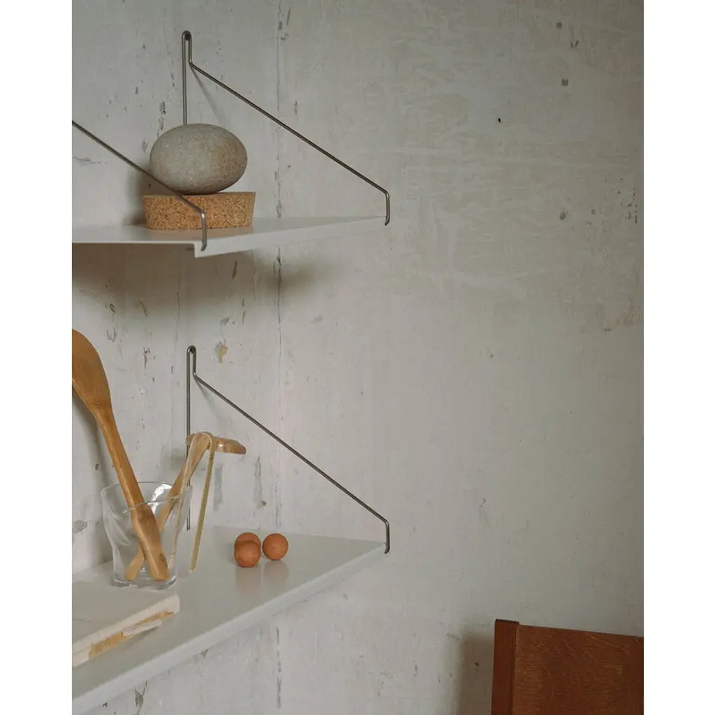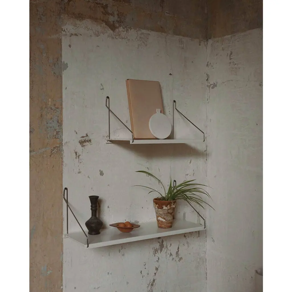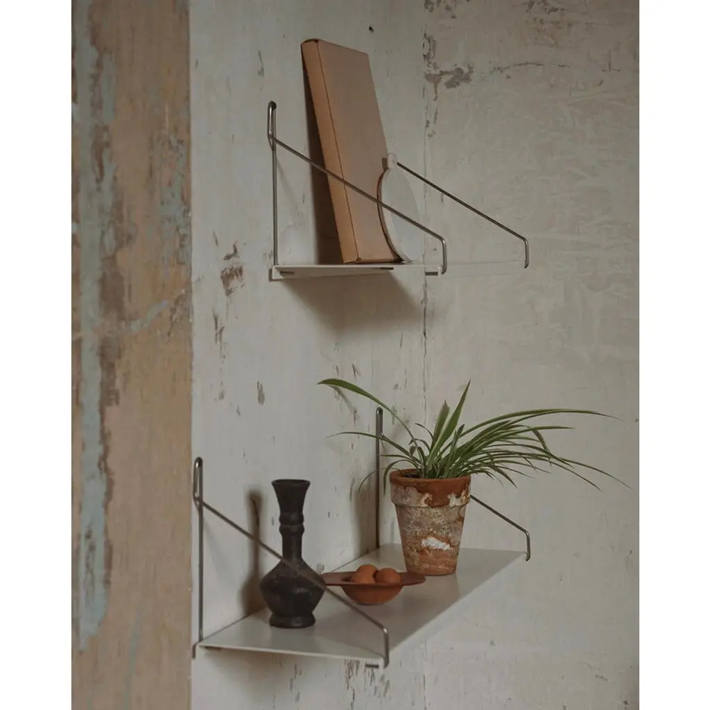 Frama's D20 wall shelf is a beautiful reinterpretation of Scandinavian shelves from the 1950s. The shelf made of powder-coated steel and held by two delicate brackets is more than pleased to display your favorite items on the wall. The simple and elegant design makes the shelf a perfect addition to various spaces from kitchen to office and living room.