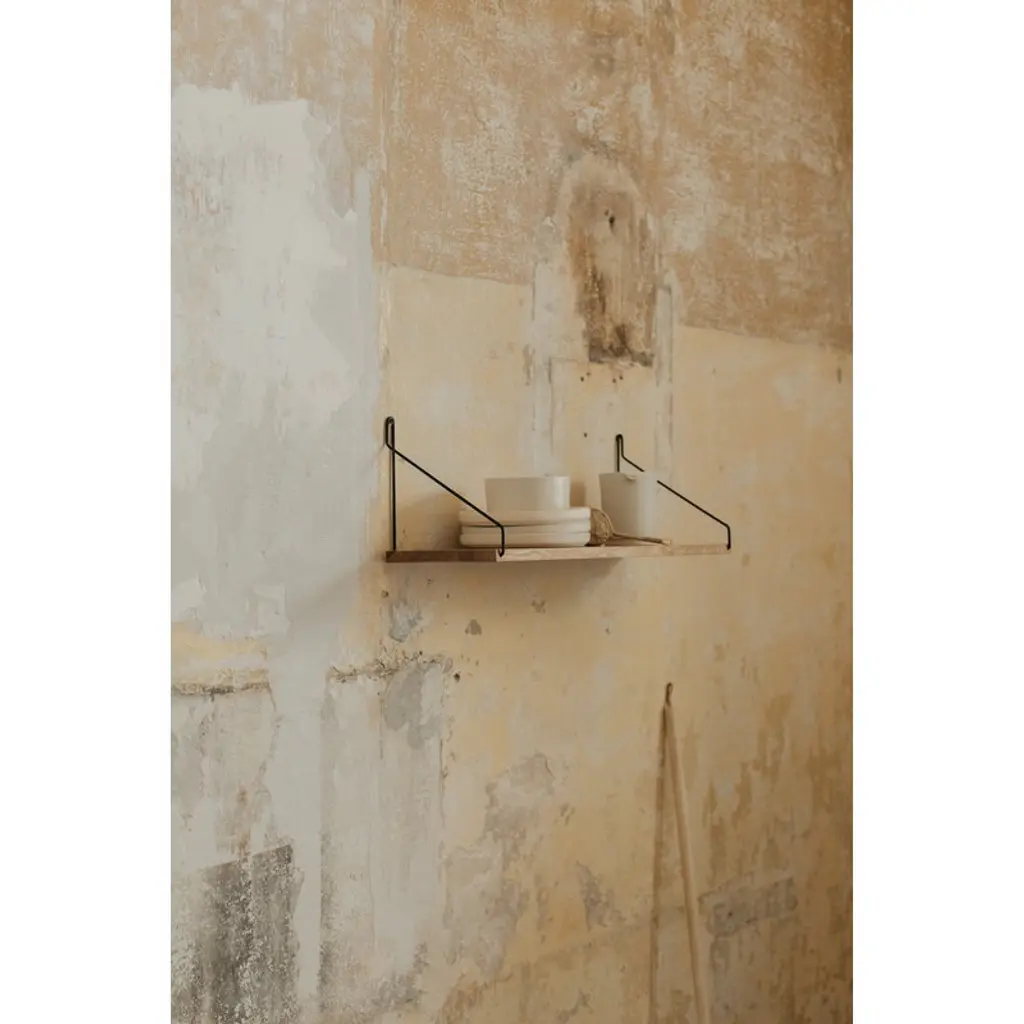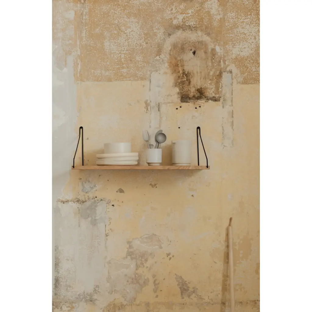 Frama’s D27 wall shelf is a beautiful reinterpretation of Scandinavian shelves from the 1950s. The shelf made of oiled oak and held by two delicate metal brackets is more than pleased to display your favorite items on the wall. The simple and elegant design makes the shelf a perfect addition to various spaces from kitchen to office and living room.