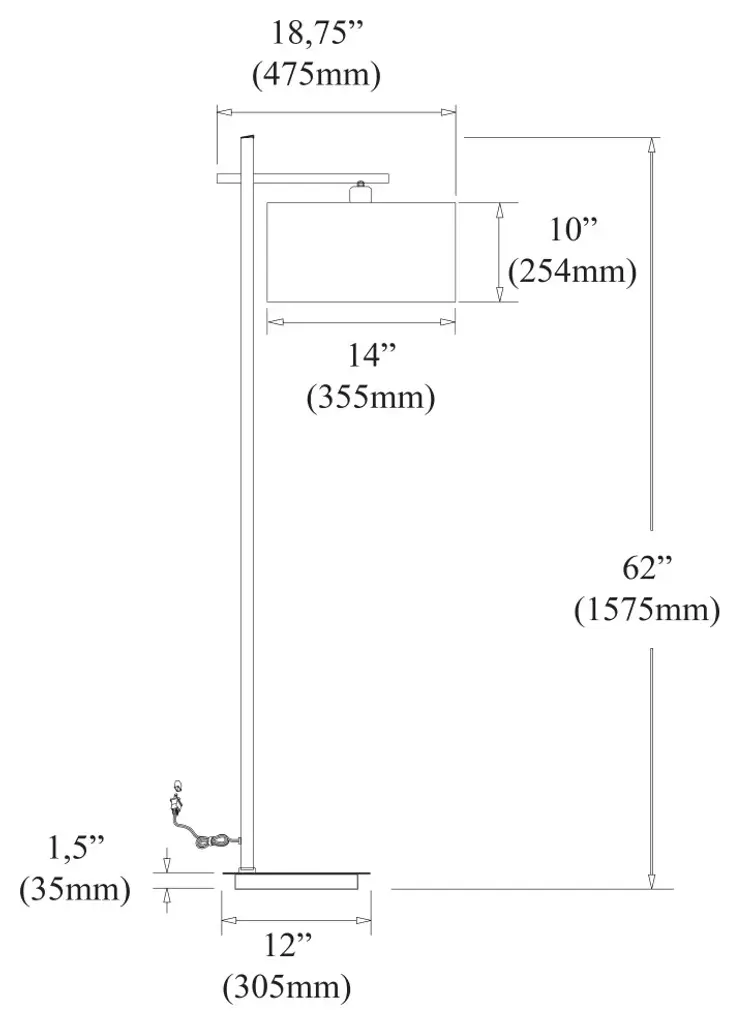 This Gretchen Floor Lamp creates a cozy atmosphere that complements both office and bedroom settings. Its unique design marries the simplicity of the metal and fabric materials with a hint of modern transitional style. Use it to infuse your room with a warm glow and to highlight your decorative touches with its subtle and sophisticated silhouette.Easy AssemblySuited for Office and BedroomAdds Transitional styling and visual interest to your décor8ft Cord provides ample reachCan be used for both commercial or residentialOur lighting fixtures come with simple installation instructions and hassle-free maintenance, ensuring a stress-free experience for our customersJoin our community of satisfied customers who have transformed their spaces with our contemporary lighting solutions, as attested by their glowing reviews and testimonialsMake a bold statement with our unique lighting designs that double as artistic masterpieces, combining form and function to elevate your space with a captivating focal pointEach lighting fixture is meticulously crafted using high-quality materials ensuring durability and sophisticationShop confidently with a 1 Year Limited Manufacturers WarrantyMade in North AmericaDimensions: 26 inch width x 62.75 inch heightWeight: 14 poundsSocket Quantity: 1Bulb Shape: A19Socket Type: E26Light Bulb Included: NoVoltage: 120Fixture Dimmable: No