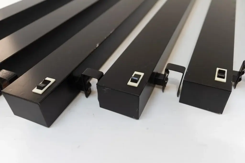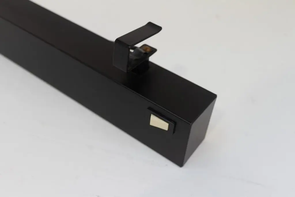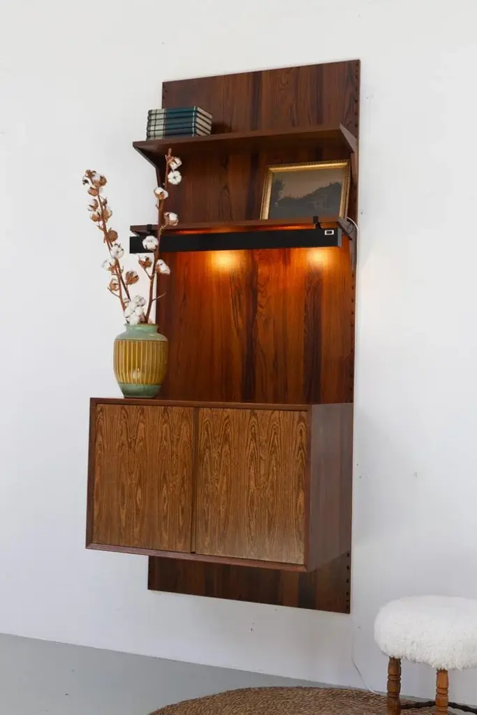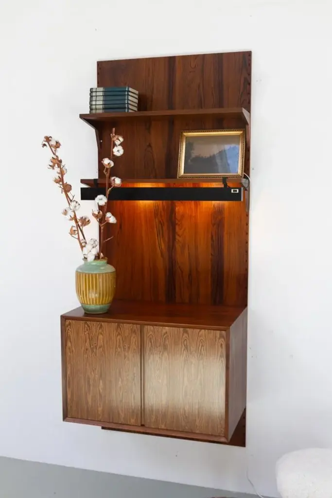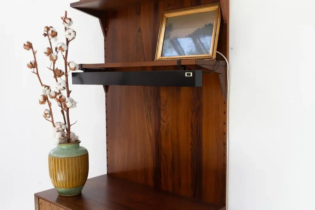 Danish shelf lamp by poul cadovius for cado, 1960s. original scandinavian mid-century modern lighting model rs 80 designed for cado shelving systems denmark 1960s. These were original accessories sold together with the cado and cado royal wall units. these matte black metal shelf lights clips on the shelf fronts. Emits a cozy and practical light. fits most danish wall units. 2 standard e14 sockets. good original condition with patina consistent with age and use. Some light wear and scratching. Working order. This piece has an attribution mark, i am sure that it is completely authentic and take full responsibility for any authenticity issues arising from misattribution, up to 250v (europe/uk standard).the wiring of this item may be original and might need replacement, if not specified otherwise.