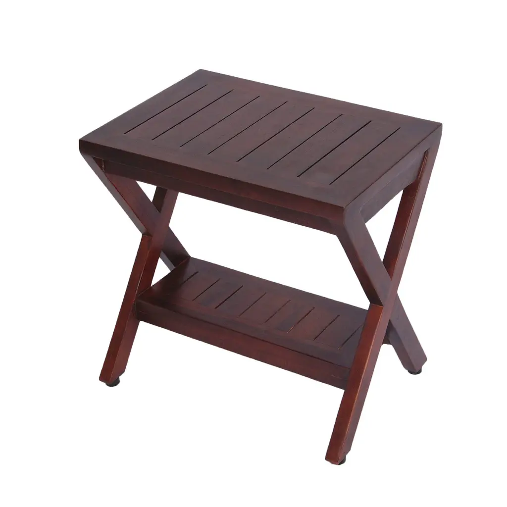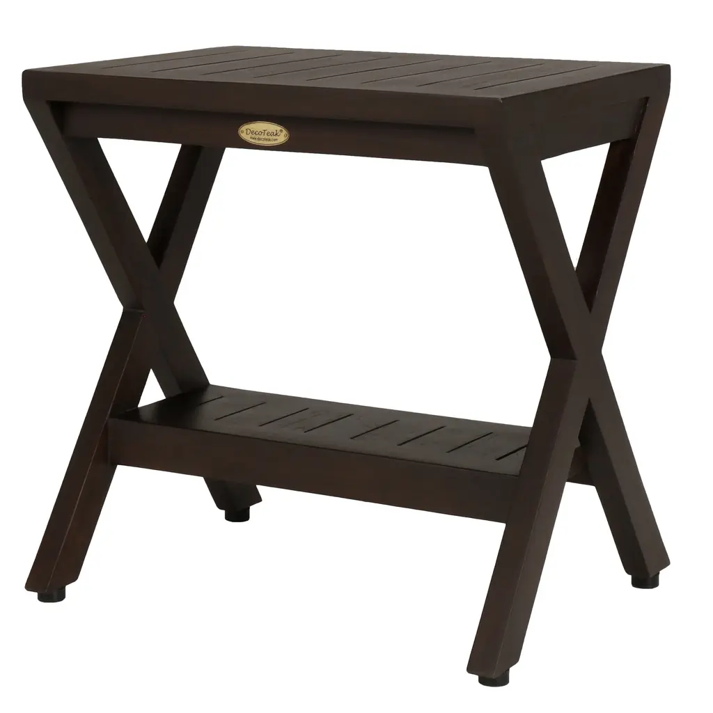 Decoteak Obliquity Solid Teak Shower Bench With Shelf In Woodland Brown Finish - Rich Brown