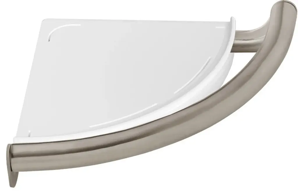 Contemporary Corner Shelf With Assist BarCorner shelf also functions as Assist barDiameter: 7/8"Height: 2-3/16"Supports loads exceeding 250 lbs when properly installedMounting hardware includedRetrievable Assist bar wall anchor includedFaucet and Finish Lifetime Limited Warranty