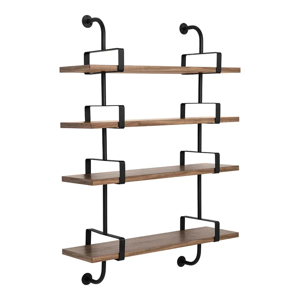 A modular shelving system that can be combined in several ways. The veneered shelves come in natural oak, natural walnut and black stained ash. The metal brackets are lacquered in black. Available in four shelf widths: 37.4in, 61in, 84.6in and 108.3in / with 3, 4, or 5 shelves.