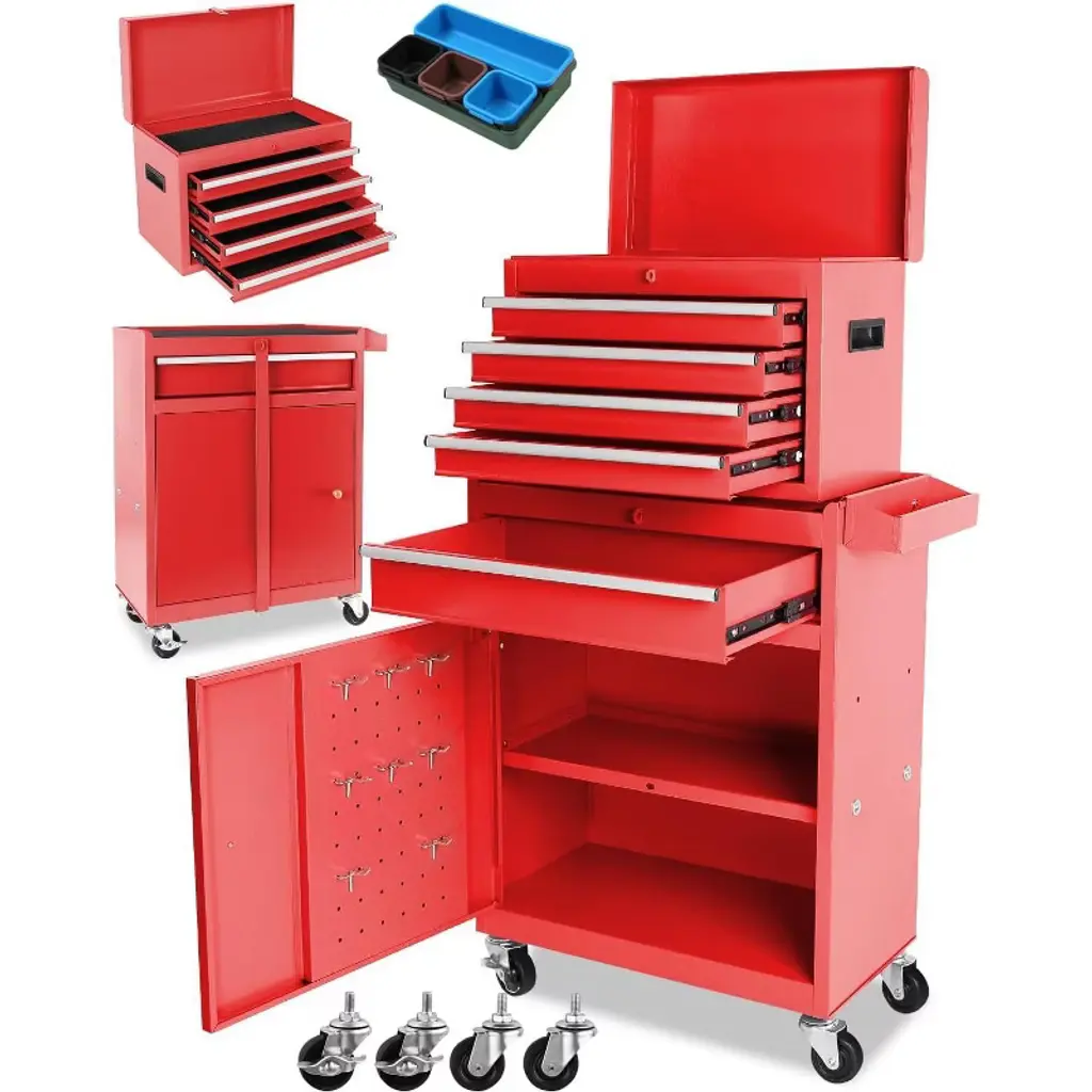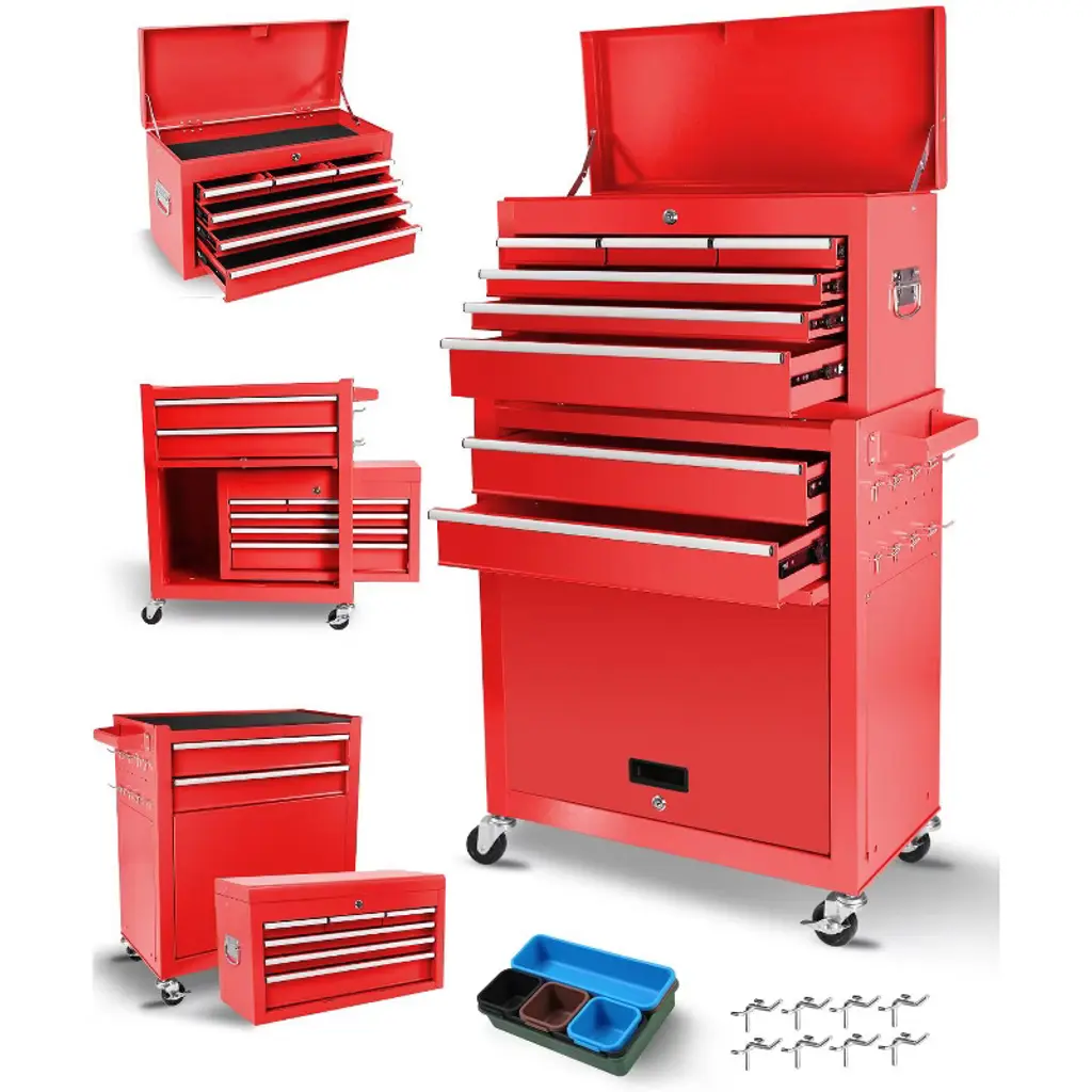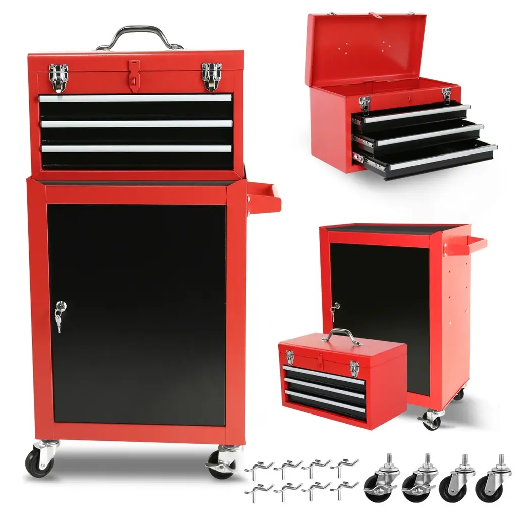 Detachable 3 Drawer Tool Chest W/storage Cabinet And Adjustable Shelf - 3-Drawer - Red