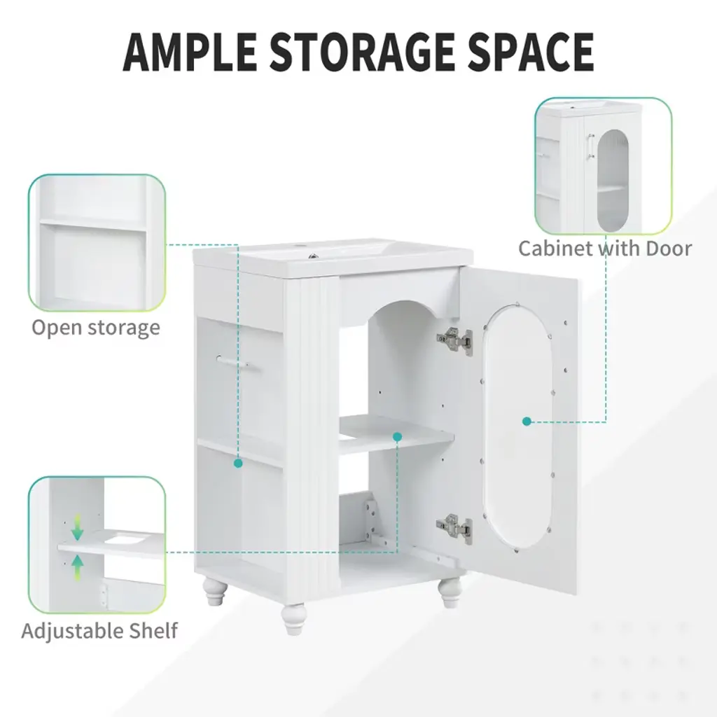 Dexmalle 20"bathroom Vanity Cabinet With Two-tier Adjustable Shelf