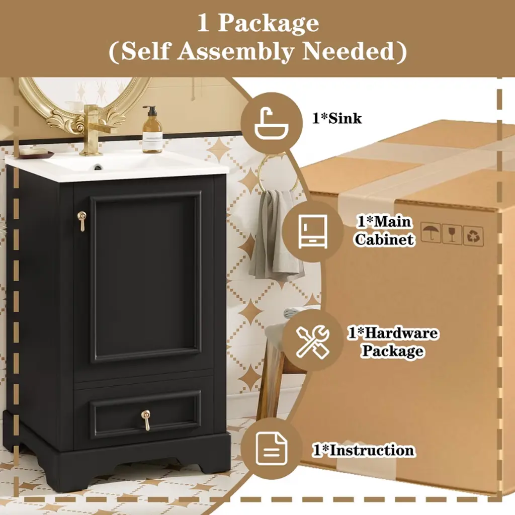Dexmalle Black Modern 20 Inch Bathroom Vanity With Adjustable U-shaped Shelf