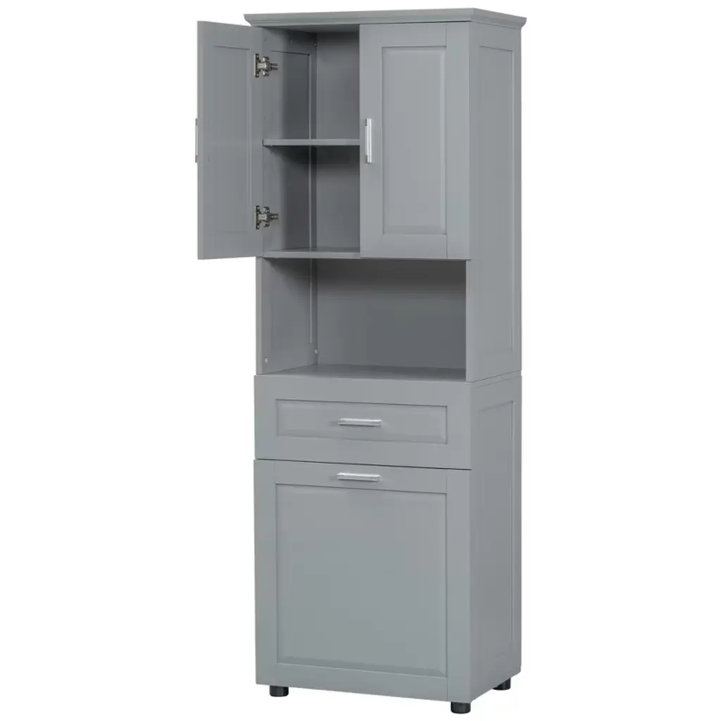 The storage cabinet is made of high-quality MDF boards with painted finish. Thus, the surface is water-proof, smooth and easy to clean. It is convenient to open or close the drawer and door with acrylic bar handles.