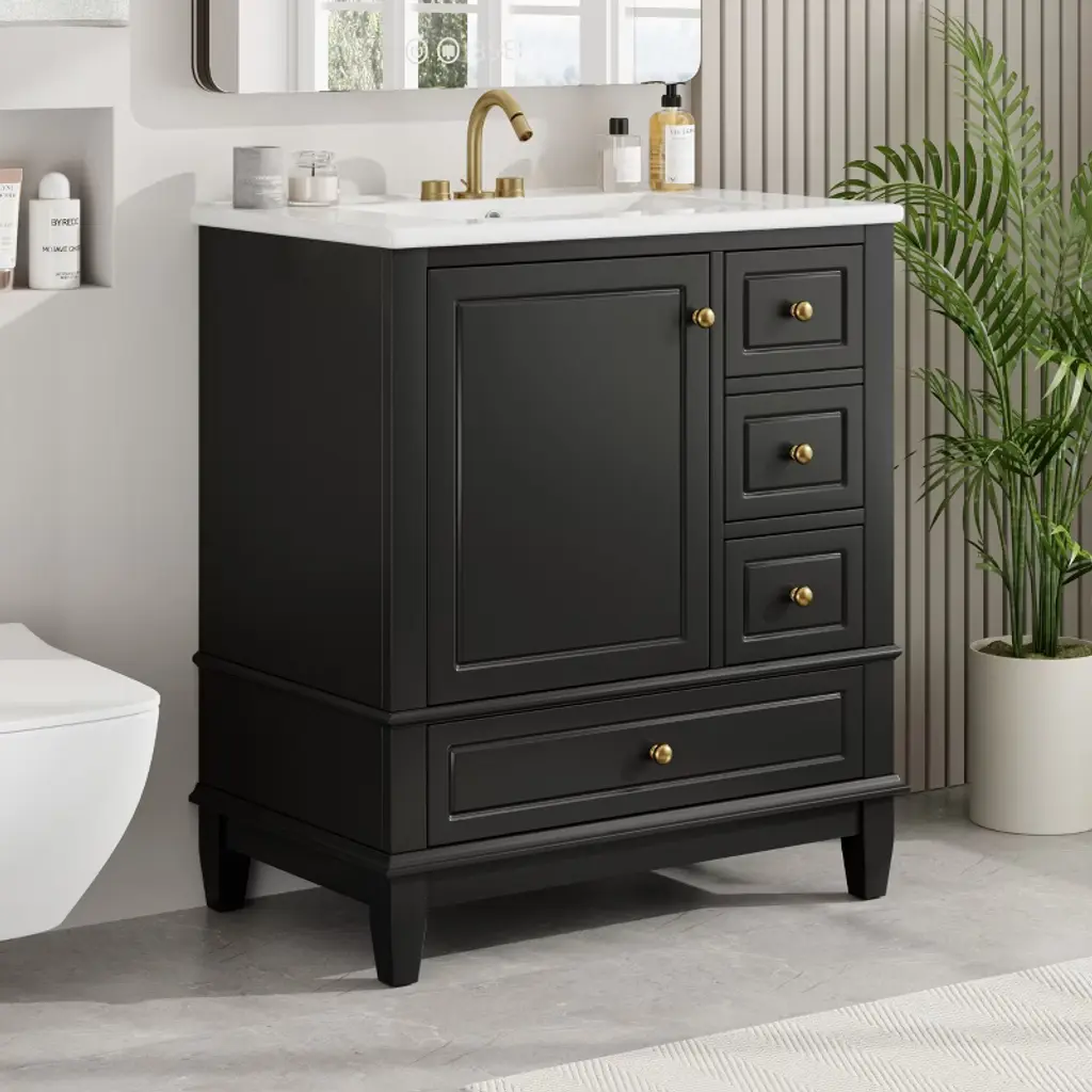 Dexmalle Modern Black 30" Bathroom Vanity One Door With Shelf And Three Drawers